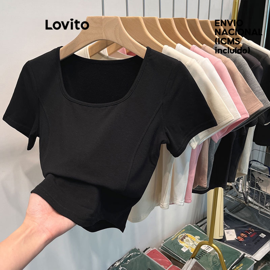 Lovito Camiseta Casual Feminina Manga Curta com gola Quadrada LNE31215