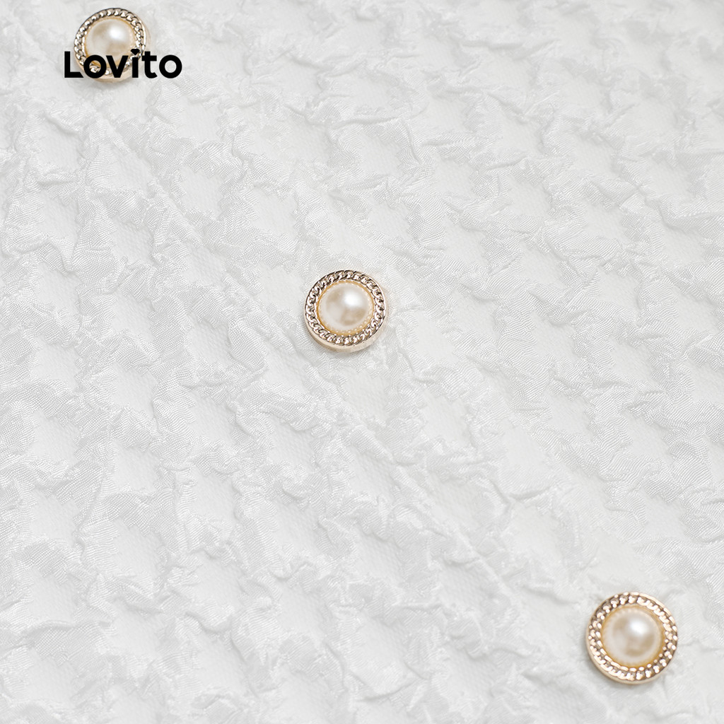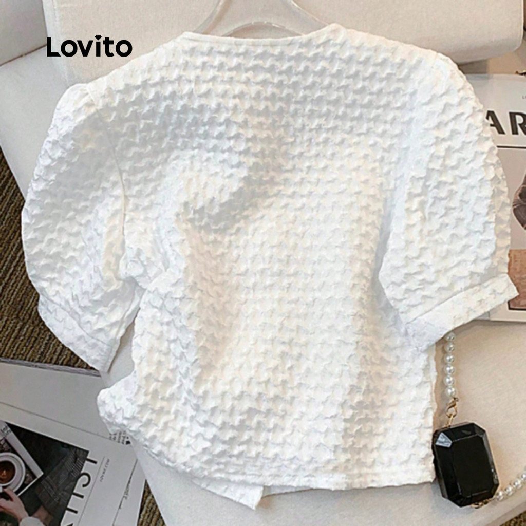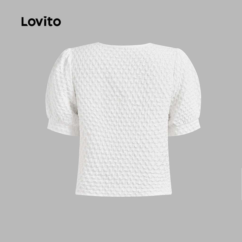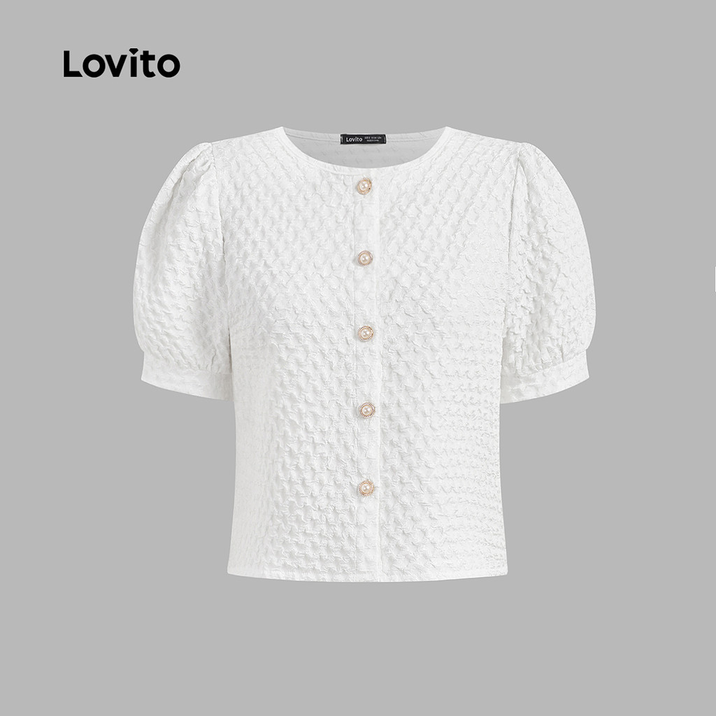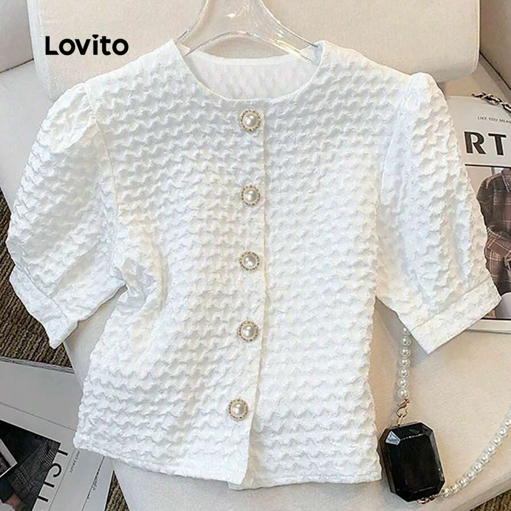 Lovito Blusa Elegante de Botões com Textura Na Frente Ideal para Primavera/verão Branca para mulheres L142ED157