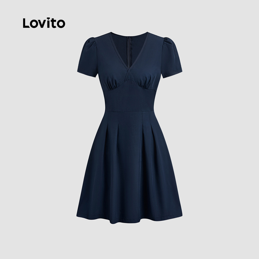 Lovito Vestido Casual de Lazer Simples para Primavera/verão Vestido Azul-marinho para mulheres L151AD454