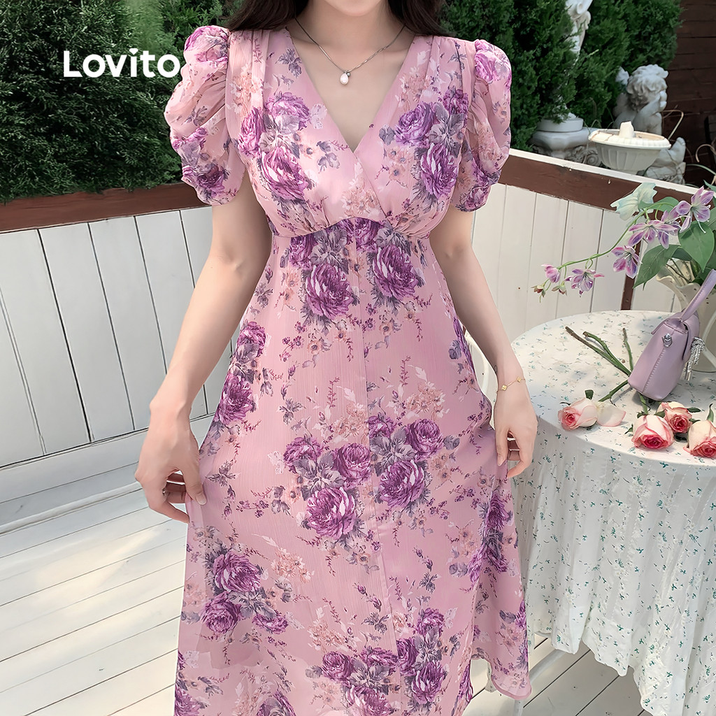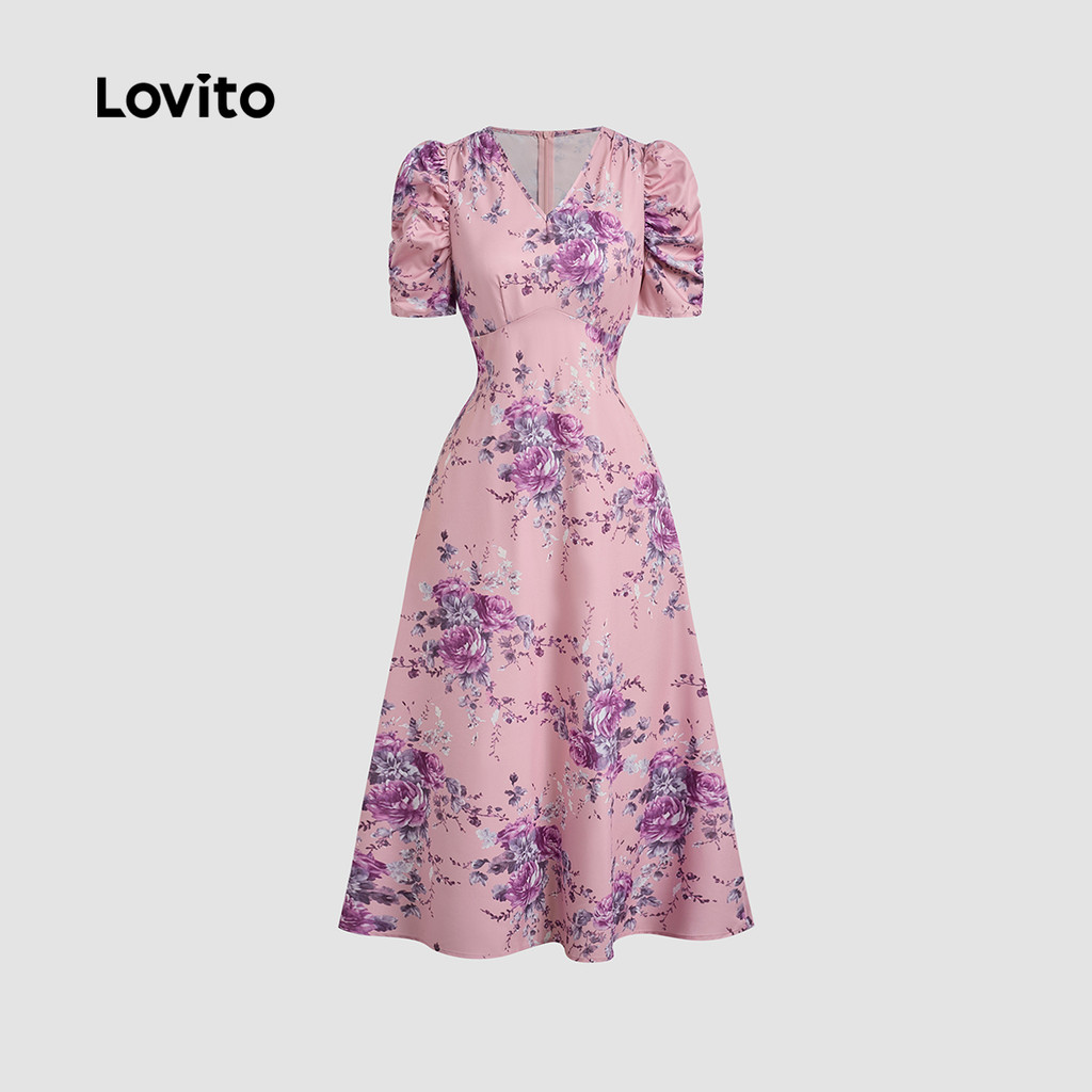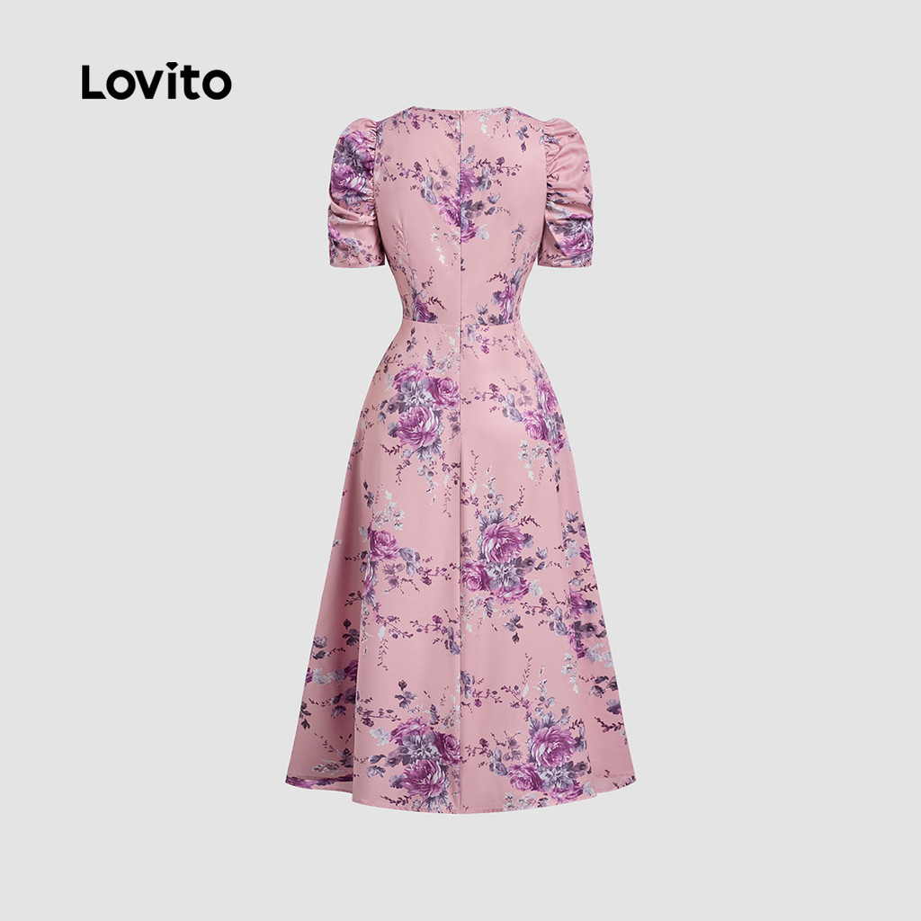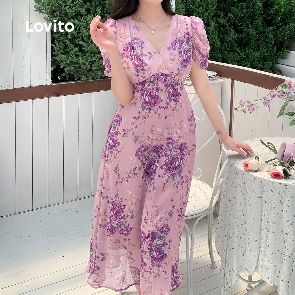 Lovito Vestido Elegante Estruturado com Pregas Primavera/verão Cinza e Roxo para Mulheres L137LD476\4