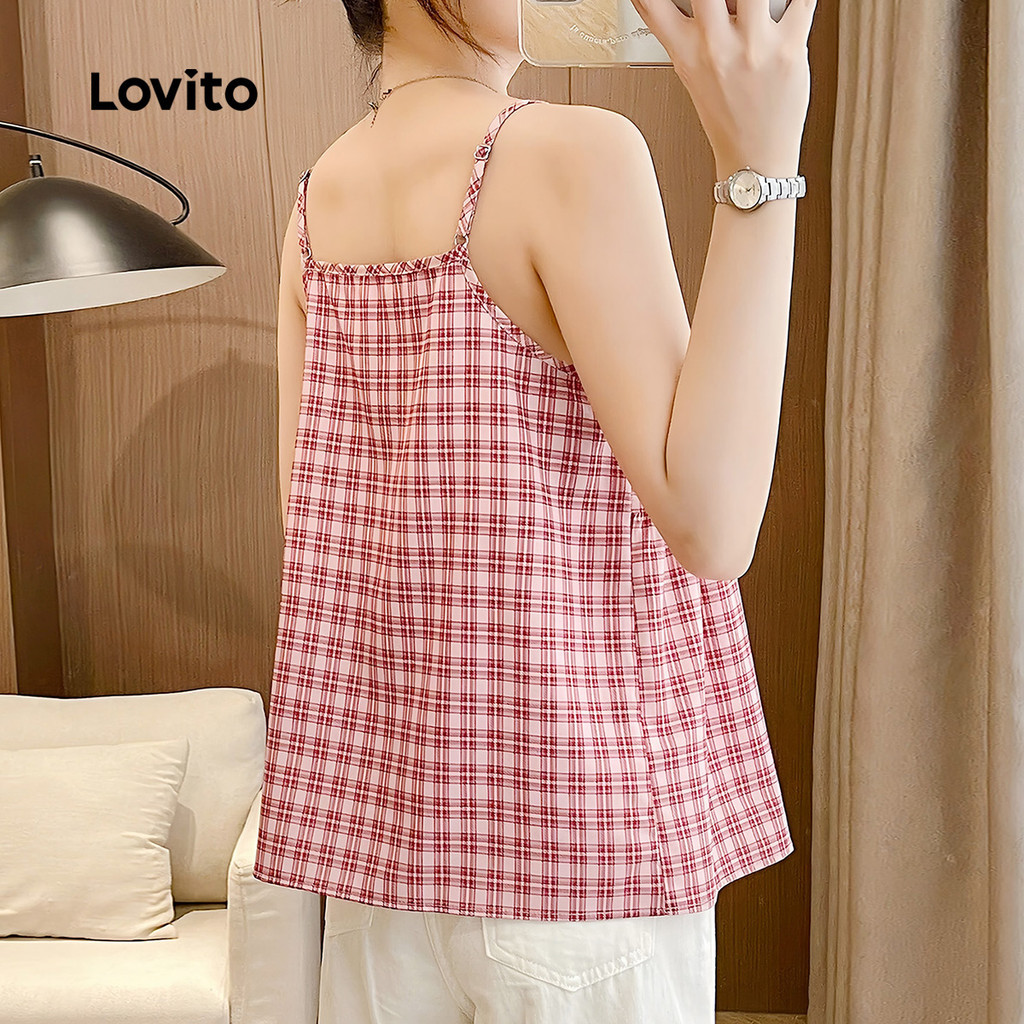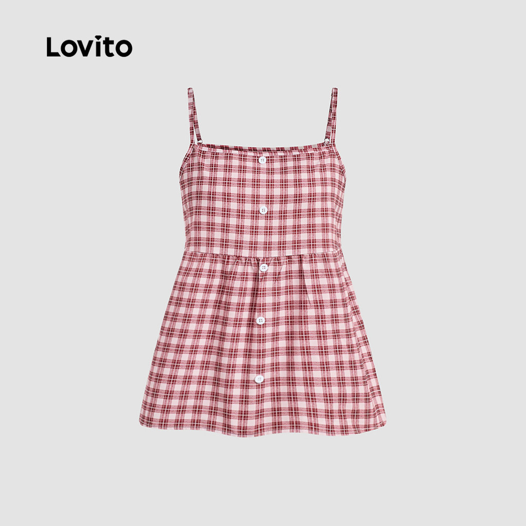 Lovito Blusa Casual de Botão Superior Primavera/verão Vermelha para mulheres L154LD325
