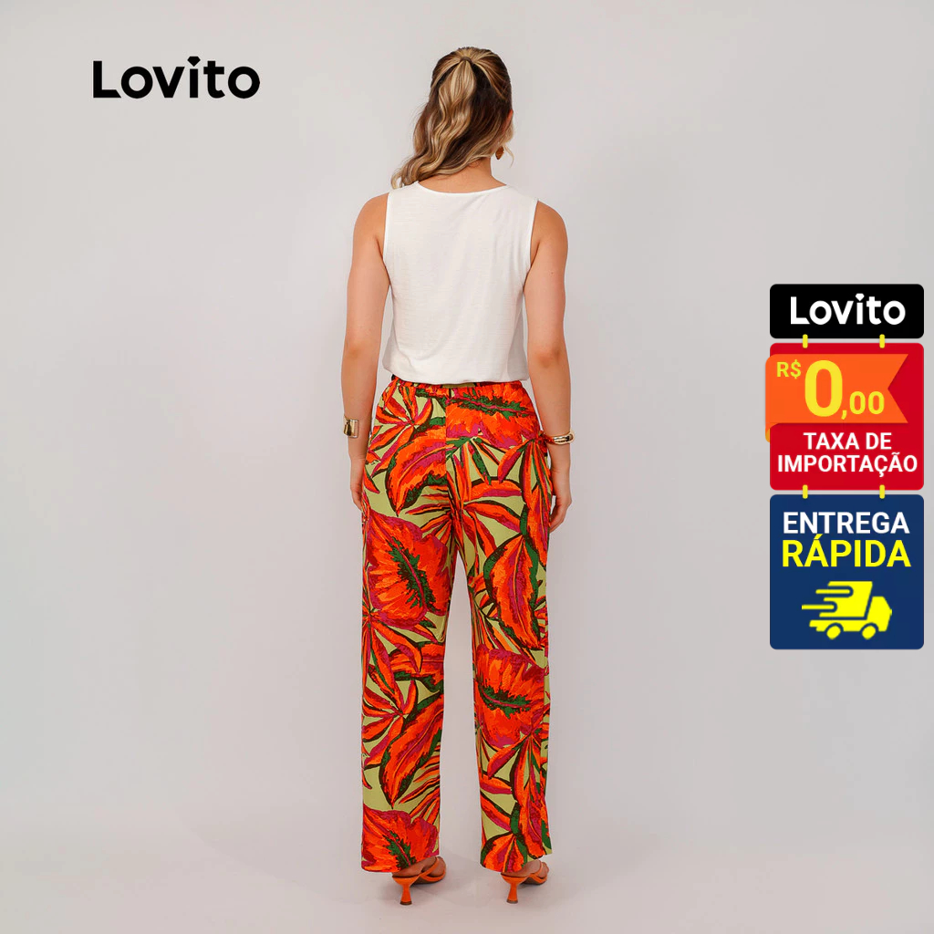 Lovito Bossa I Calça Feminina em Viscose com Amarração e Estampa Boho de Folhagens LB1474BRL1504