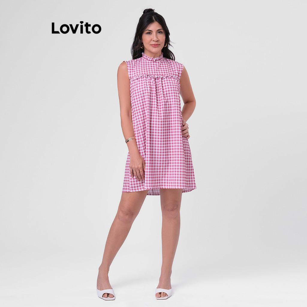 Lovito Vestido Xadrez Curto Com Babados Feminino LB174BRL203