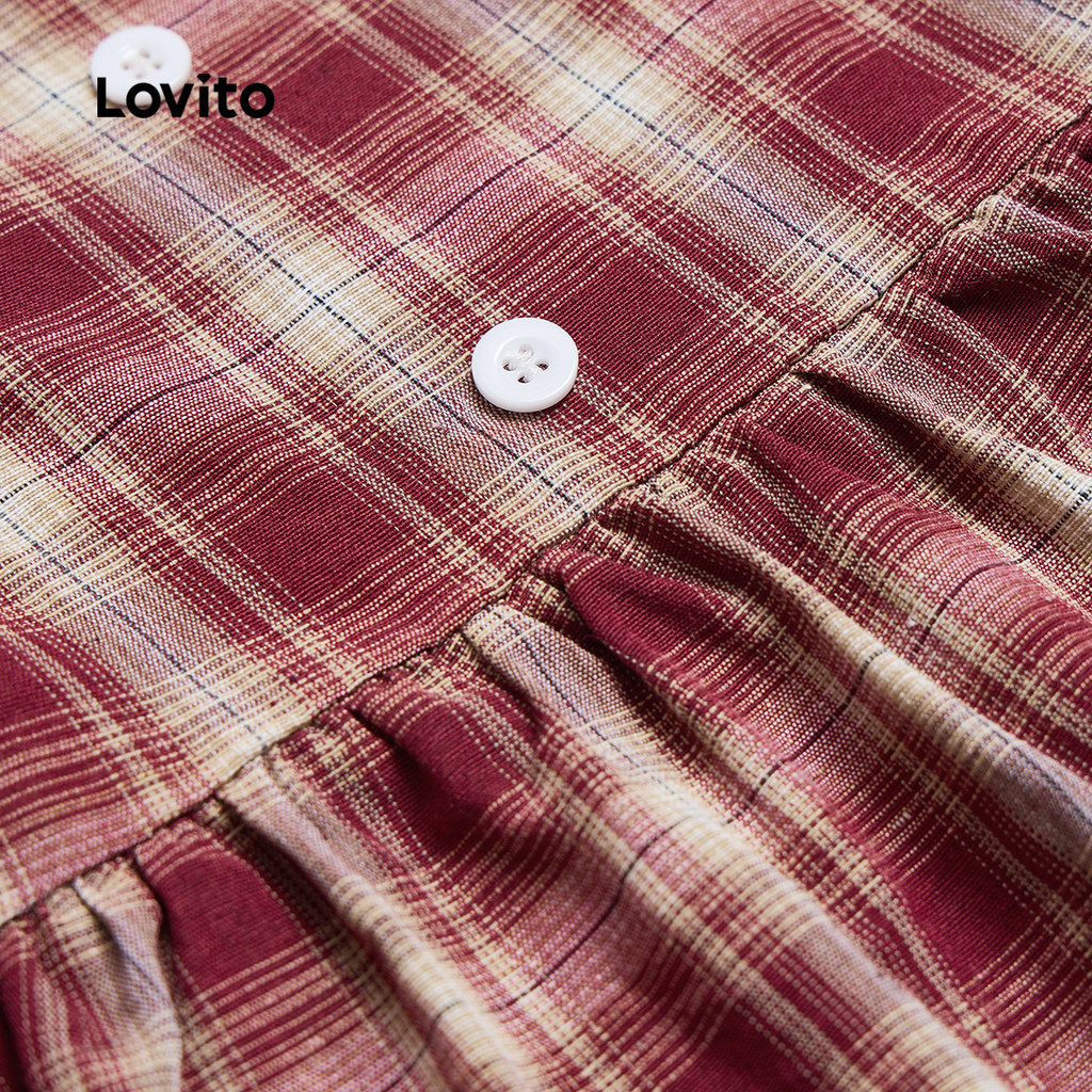 (Trendy) Lovito Casual Xadrez Babados Bainha Amarrar Frente Botão Regata para Mulheres L124AD214