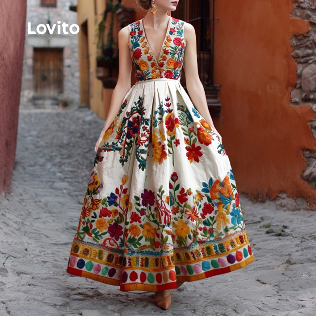 Lovito Vestido Feminino Boho Estampa Floral Primavera Verão L170ED106