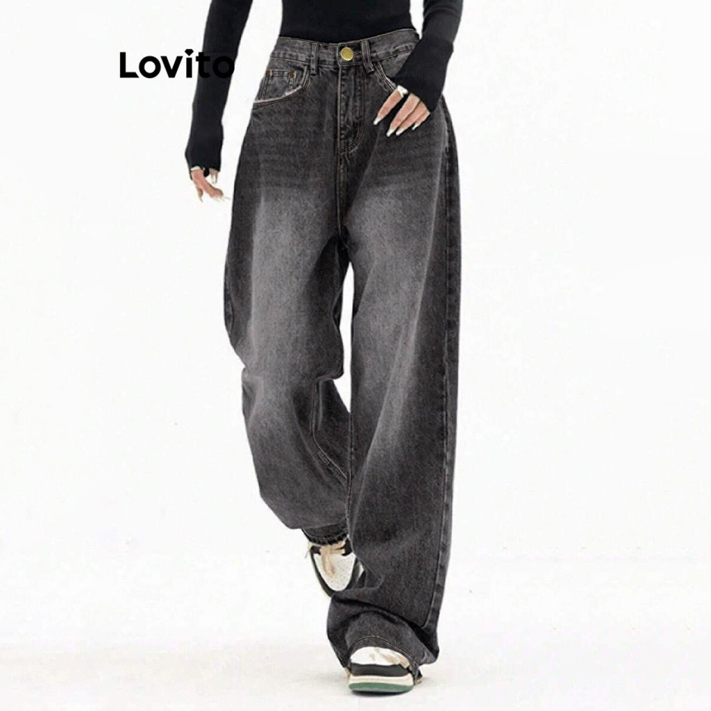 Lovito Jeans Casuais Cat'S Whiskers Pocket Jeans Para Mulheres L106AD1240
