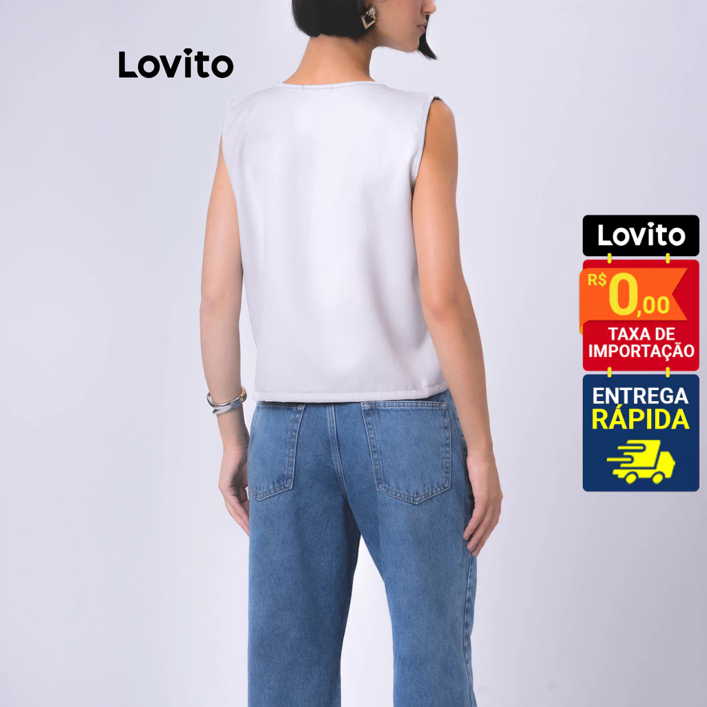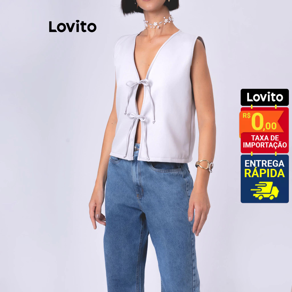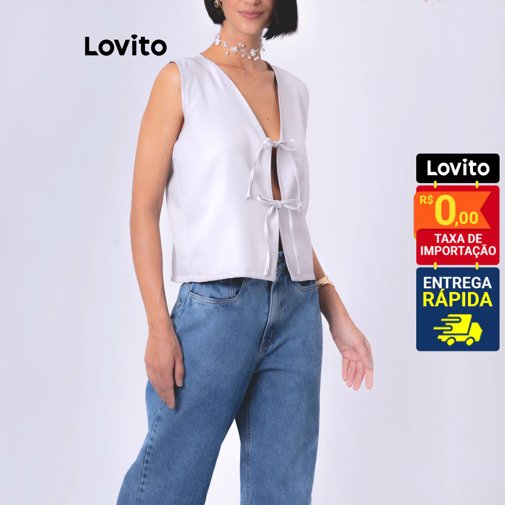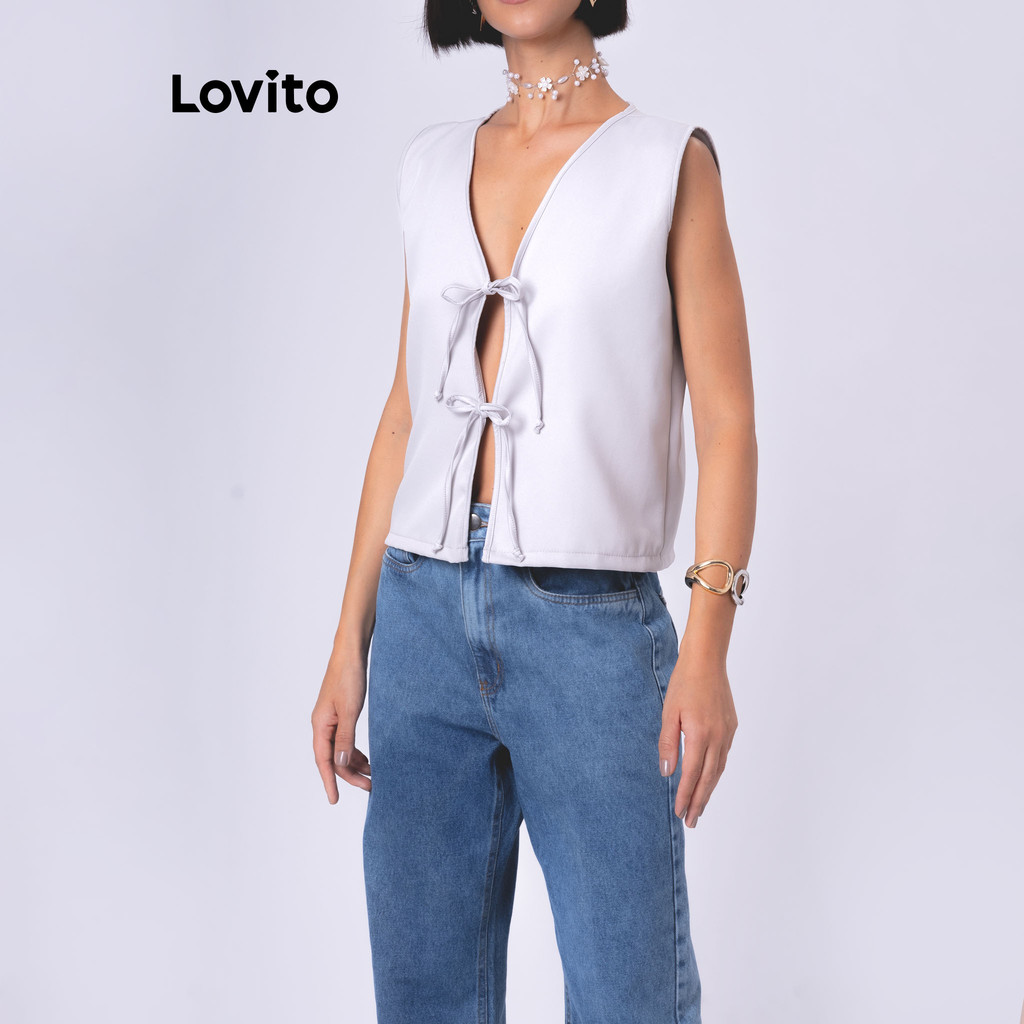 Lovito Colete com Laços Frontais sem Manga Laços com Amarração Moda Feminina LB94BRL124