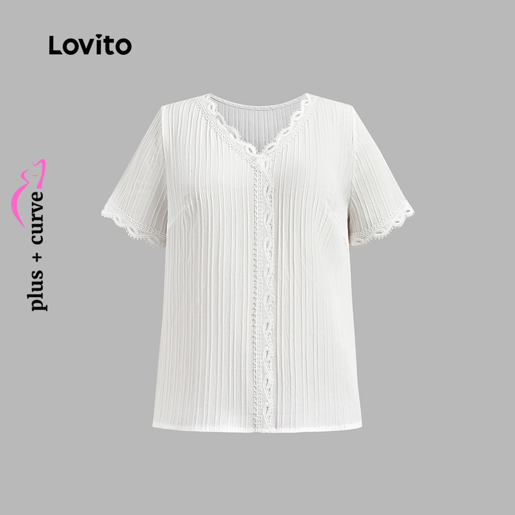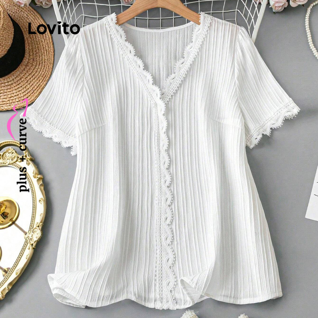 Lovito Blusa Plus Size Curve Elegante Blusa Lisa Com Trança Para Verão/primavera Para Mulheres LBL22639