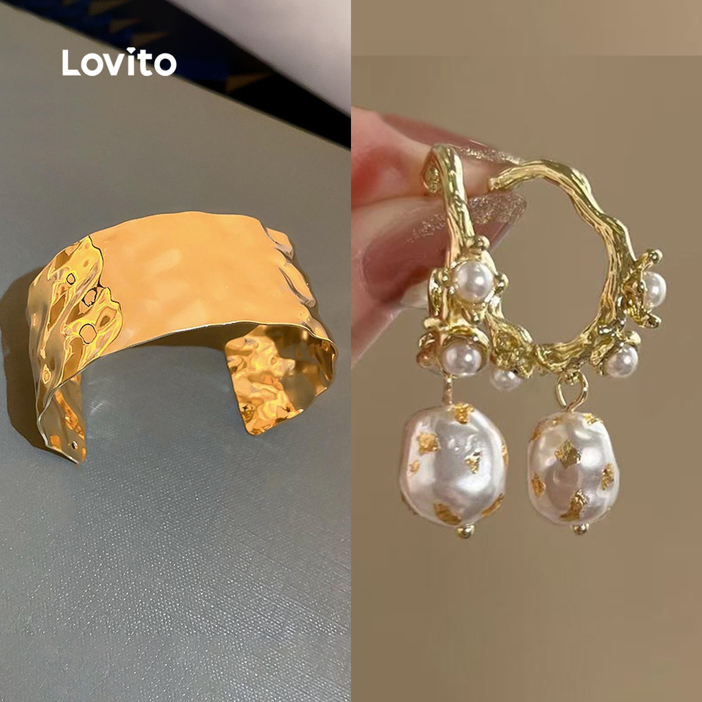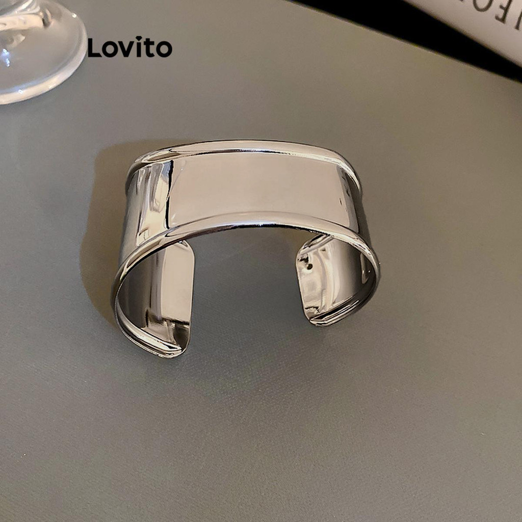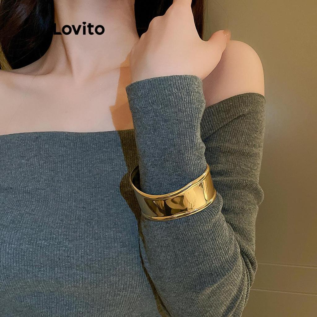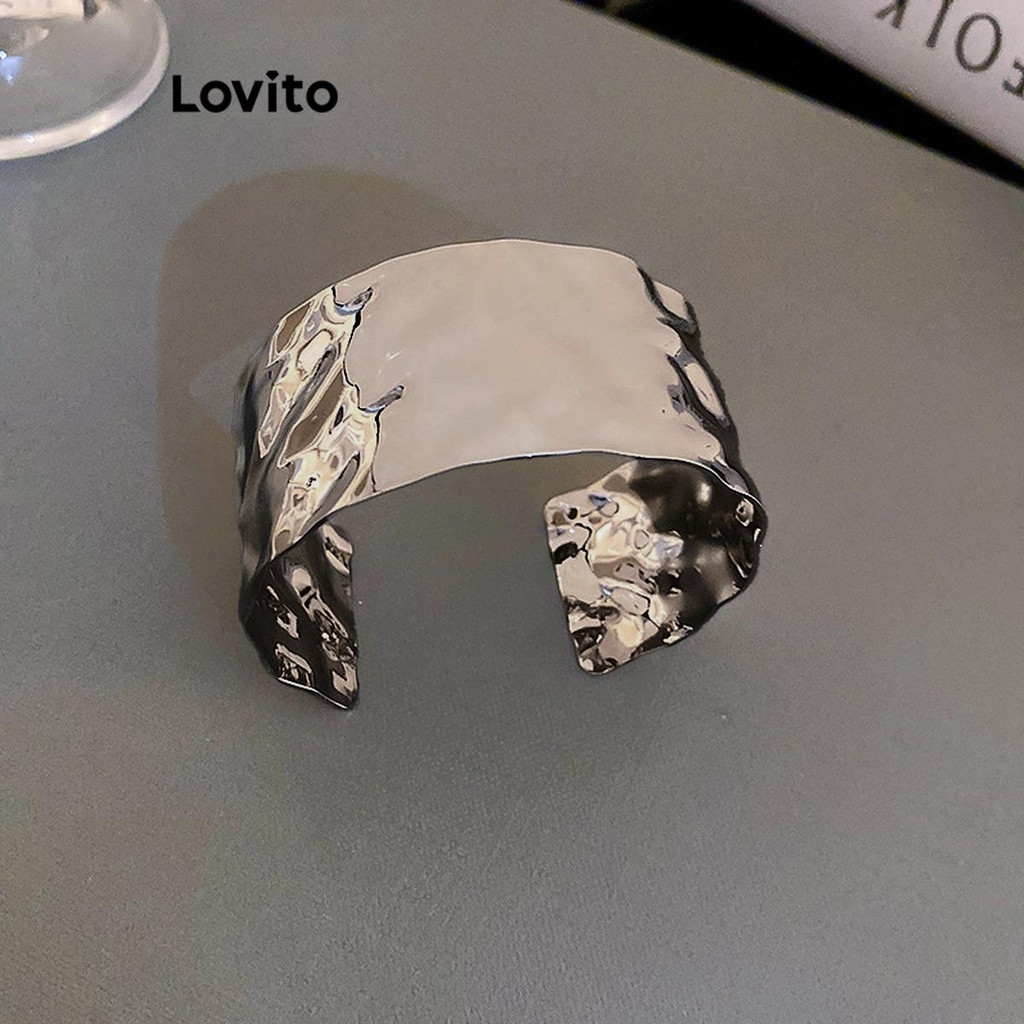 Lovito Pulseira Elegante larga pregas irregulares superfície brilhante Pickleball Mulheres LFA70009