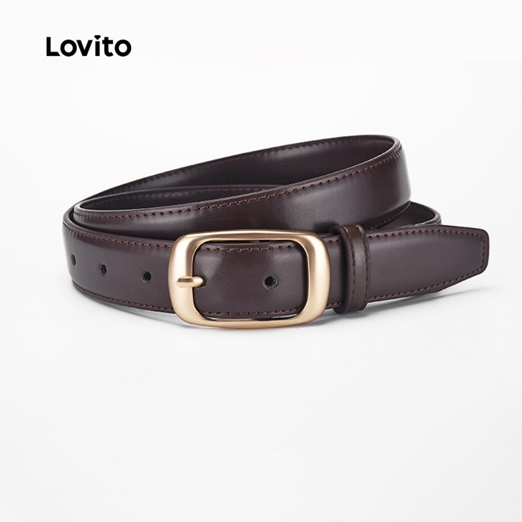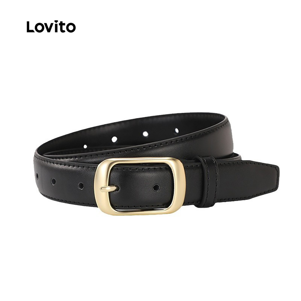 Lovito Cinto Feminino Casual de Metal para Todas As Estações, Cor Preta, Modelo LFA83217