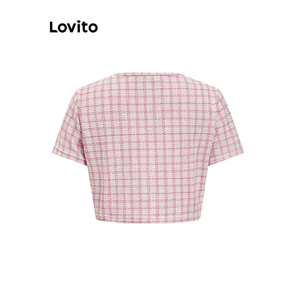 Lovito Blusa De Primavera E Verão Casual Gravata Frontal Xadrez Blusa De Renda Para Mulheres L90AD001 (Multicolorido)