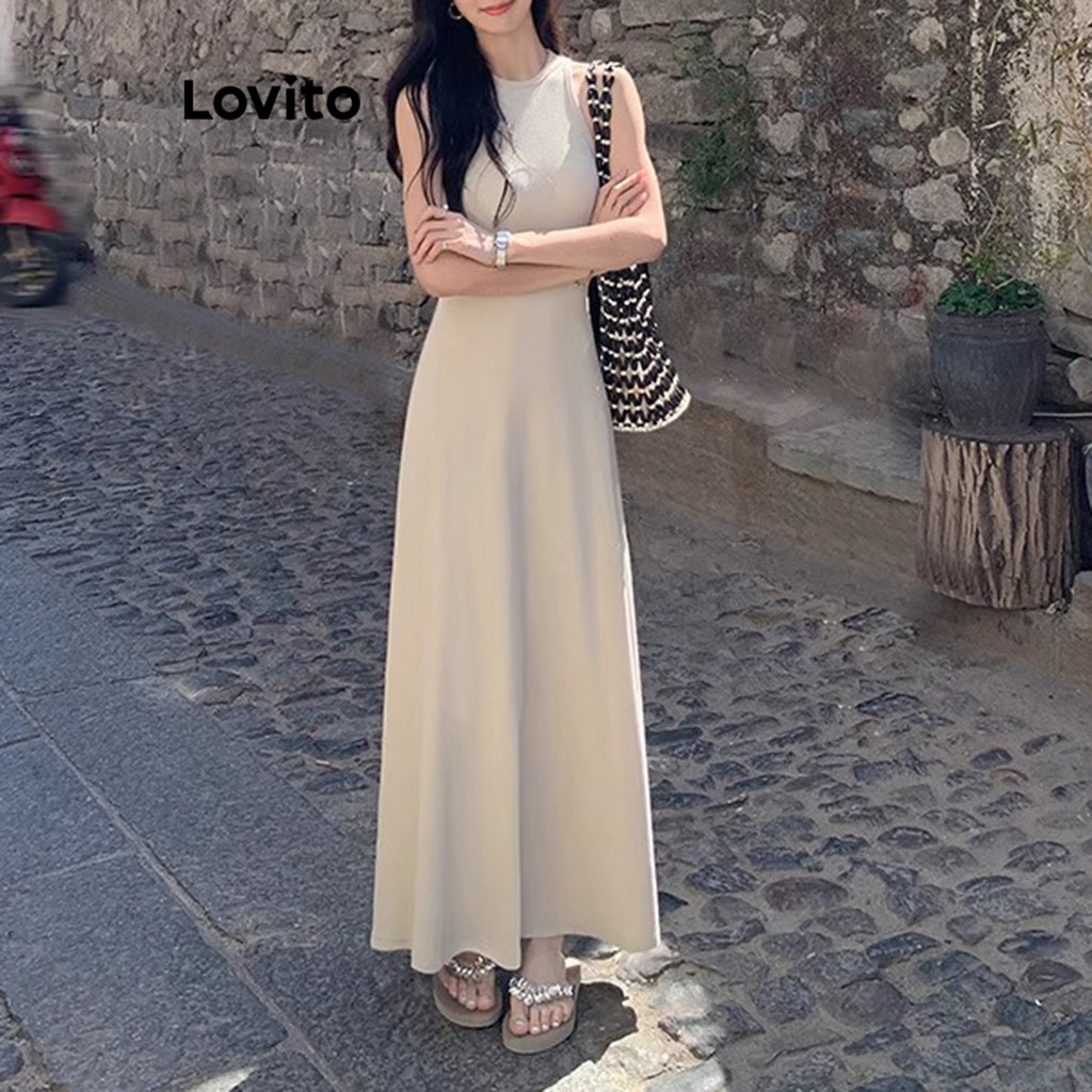 Lovito Vestido Básico Casual De Verão/primavera Para Mulheres LNA65518