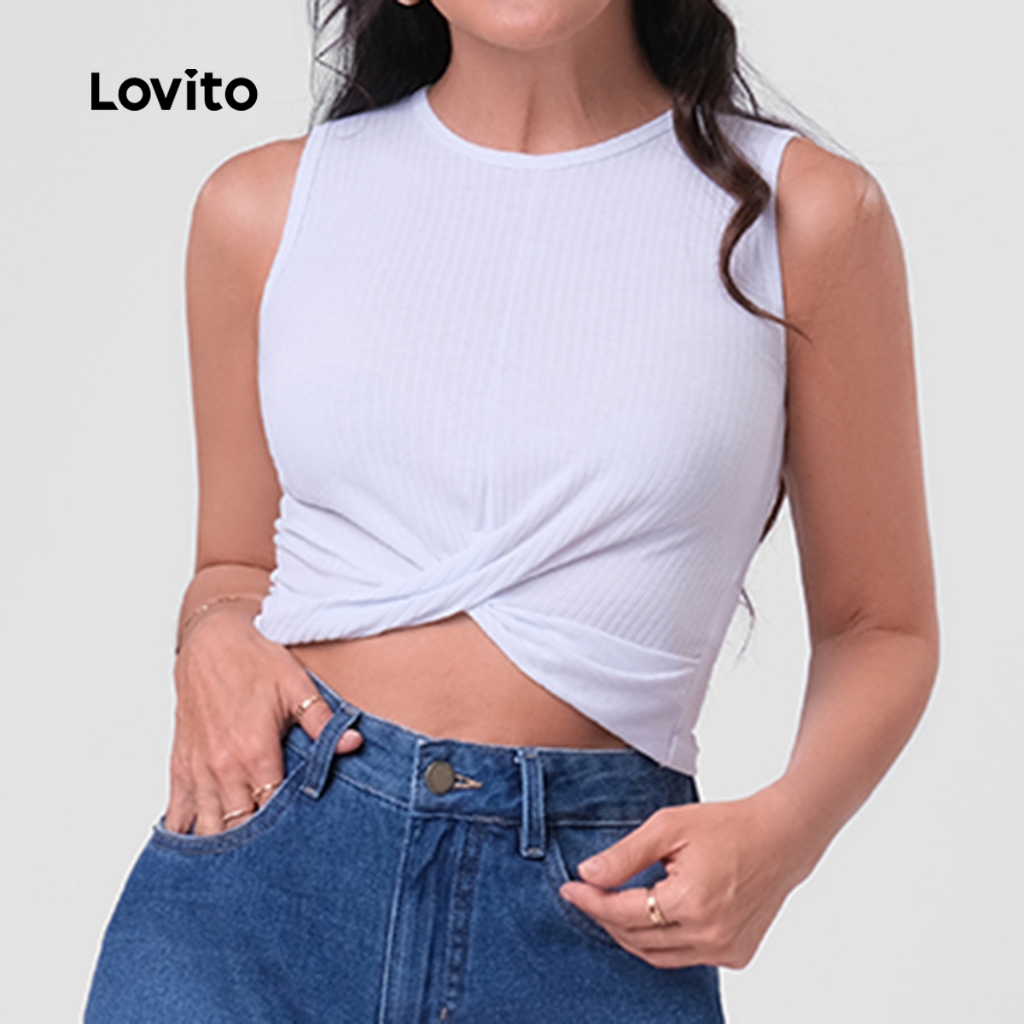 Lovito Regata Feminina Cropped com torção Frente LB165BRL194