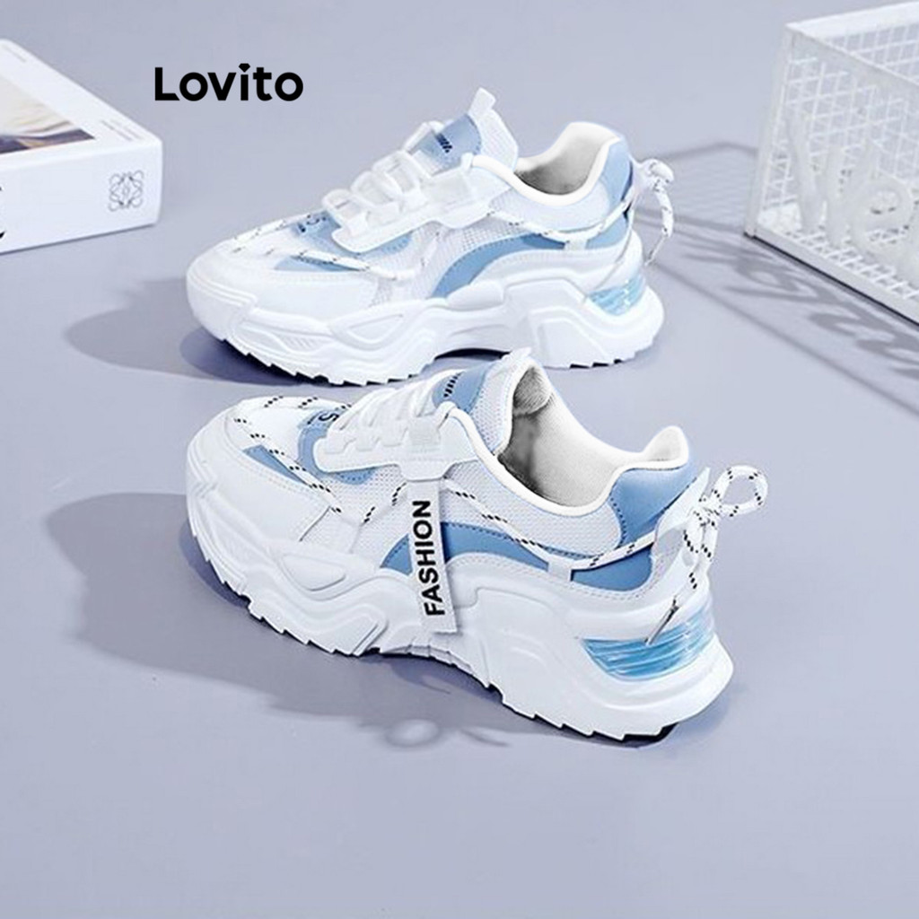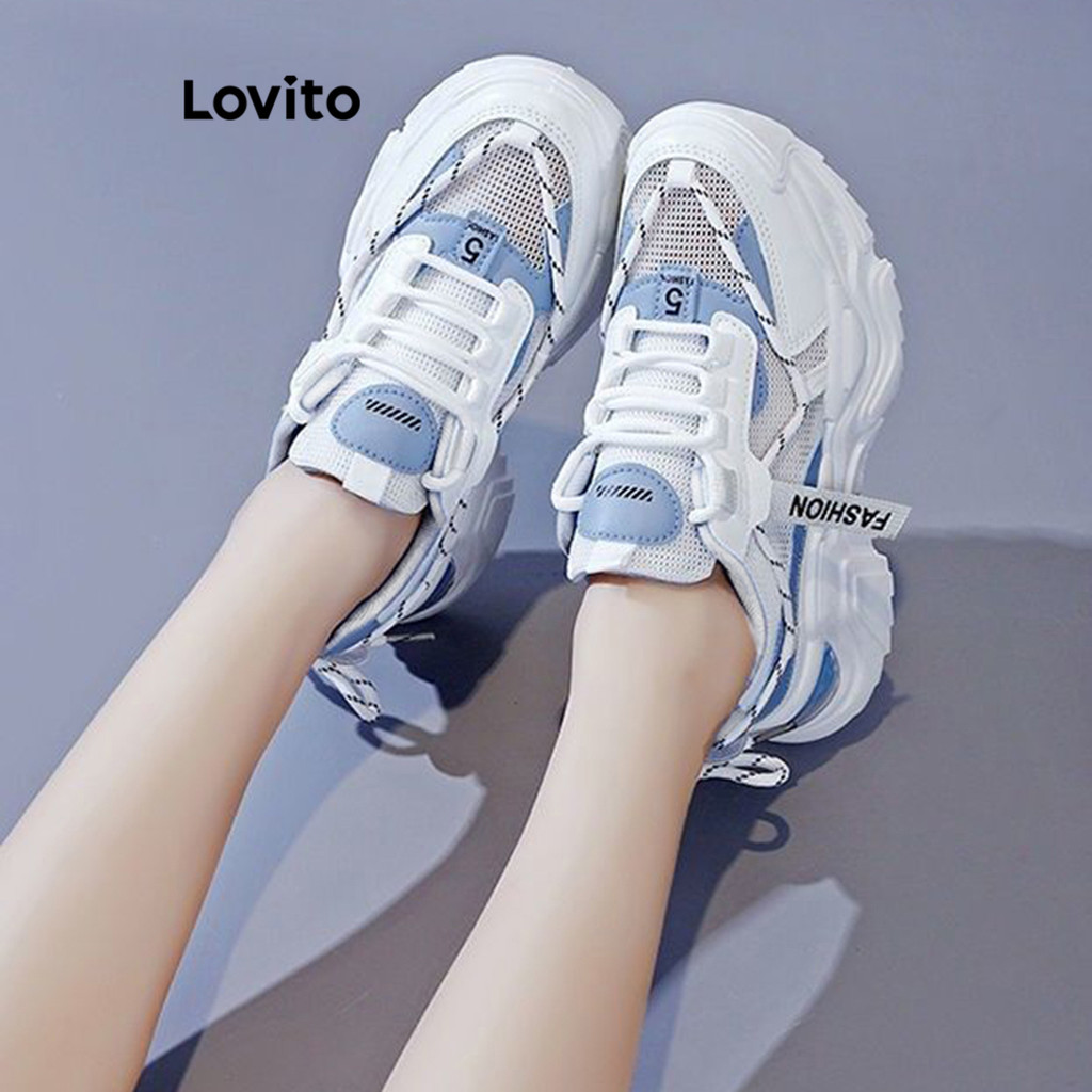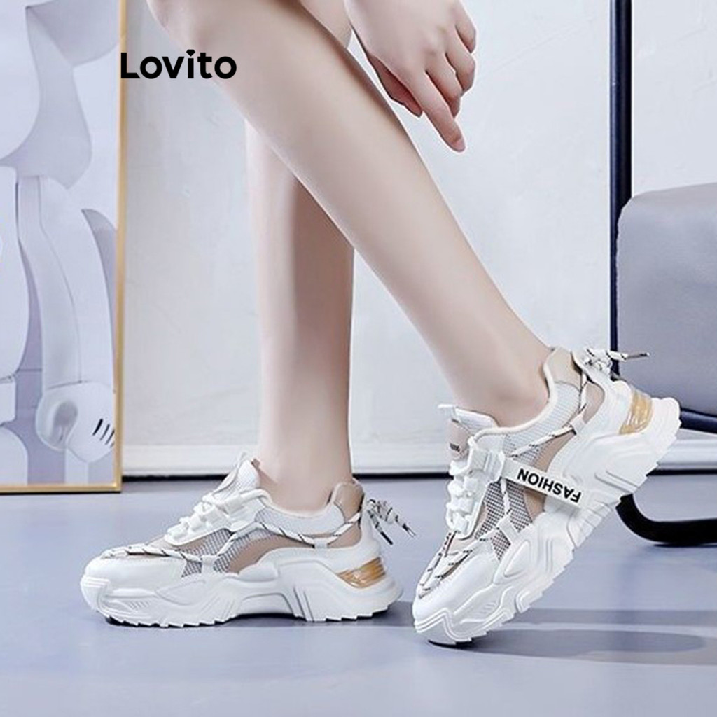 Lovito Tênis esportivos de malha com sola grossa para mulheres LFA60477