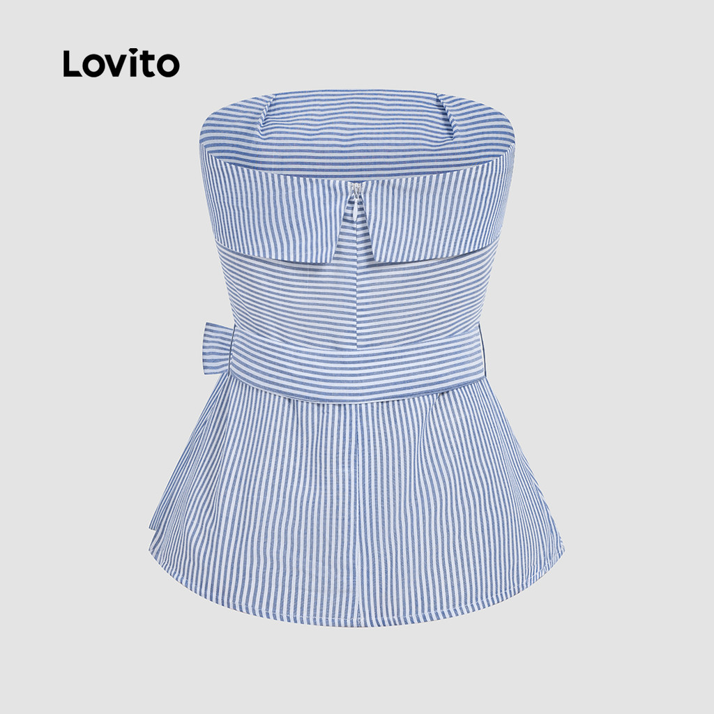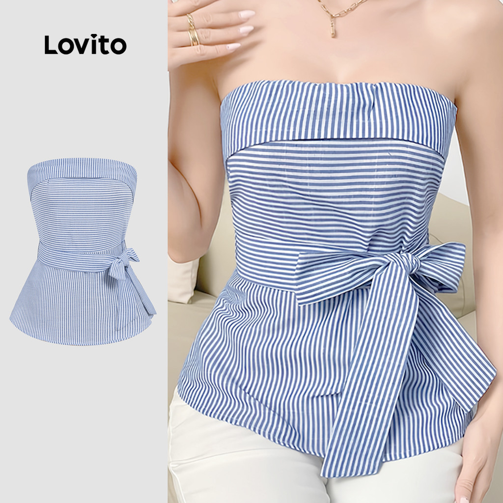 Lovito Top Casual Feminino Listrado Com Zíper E Amarração Frontal Regata De Verão/primavera L129AD1477