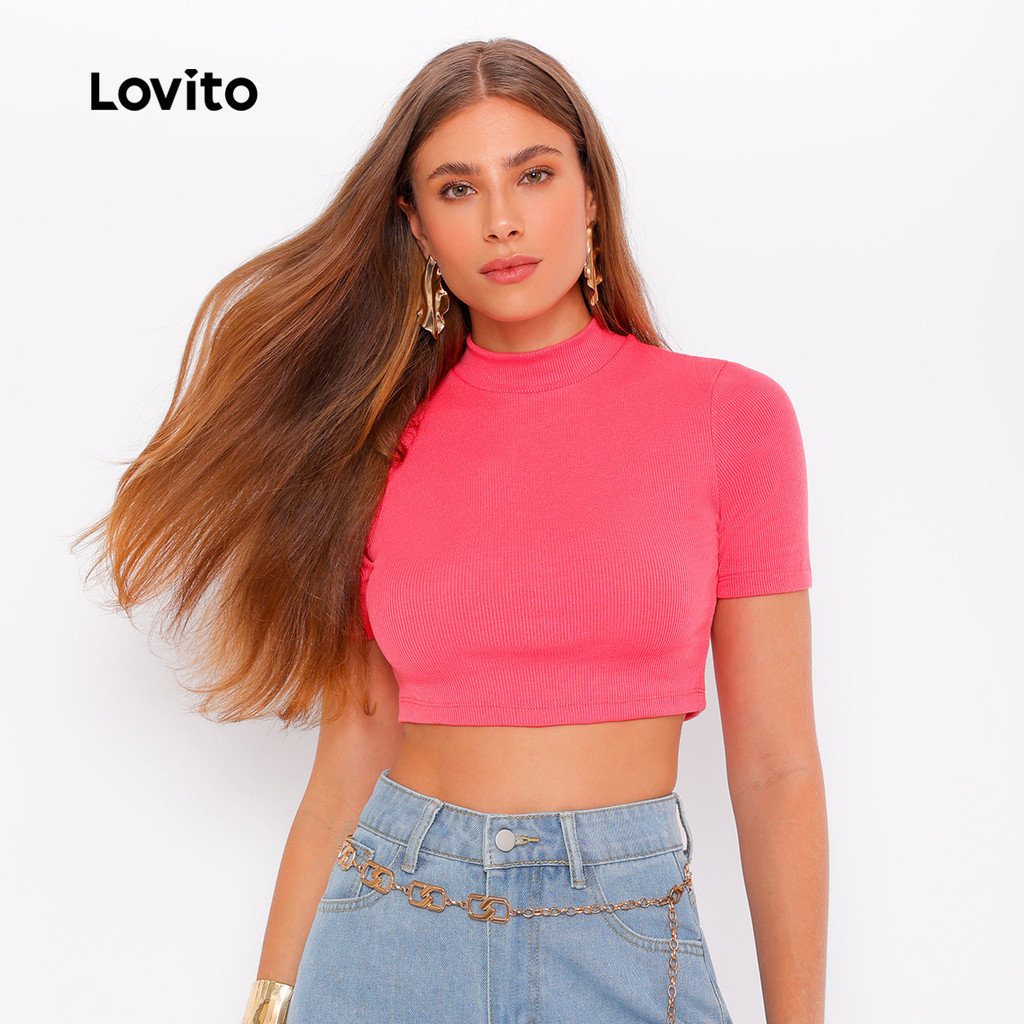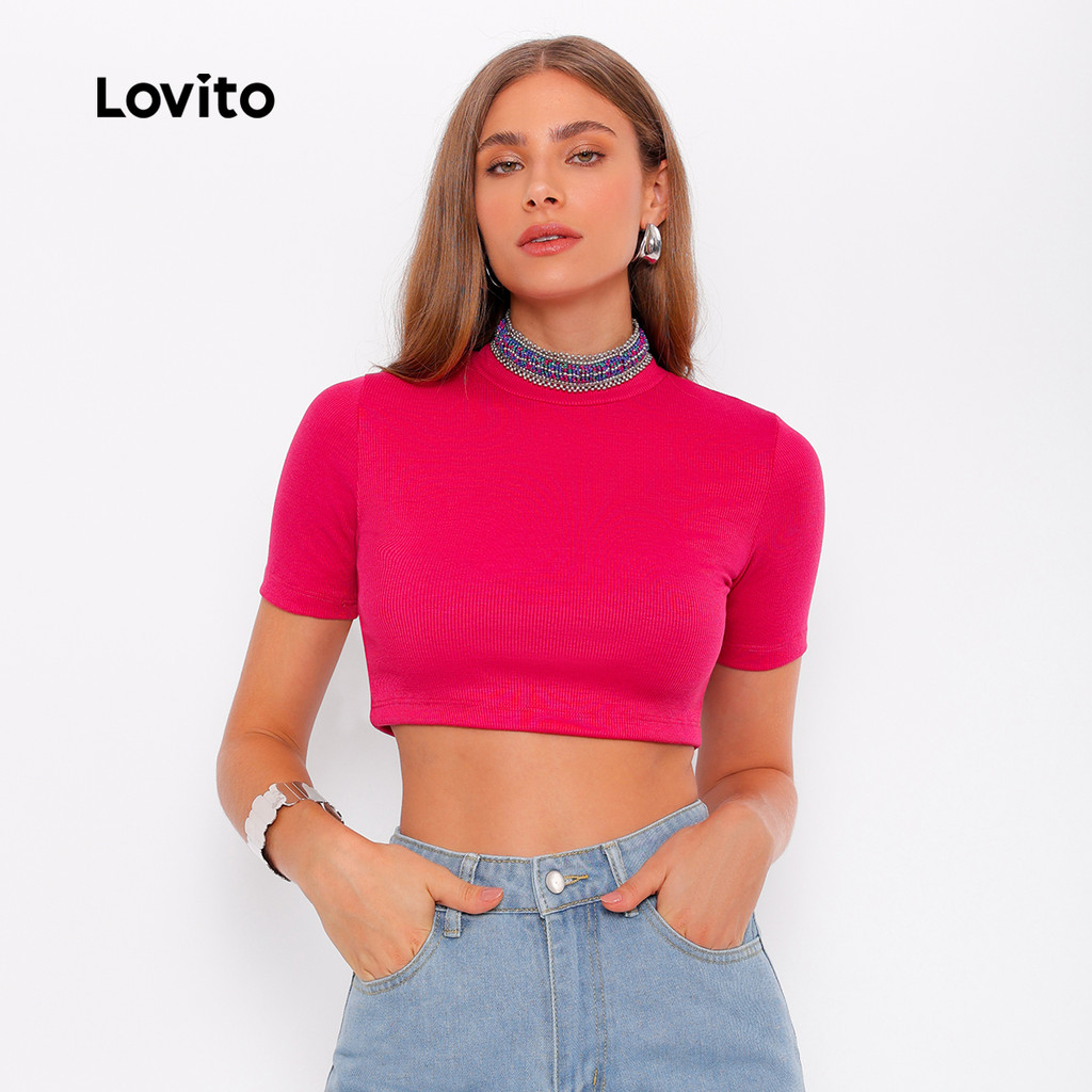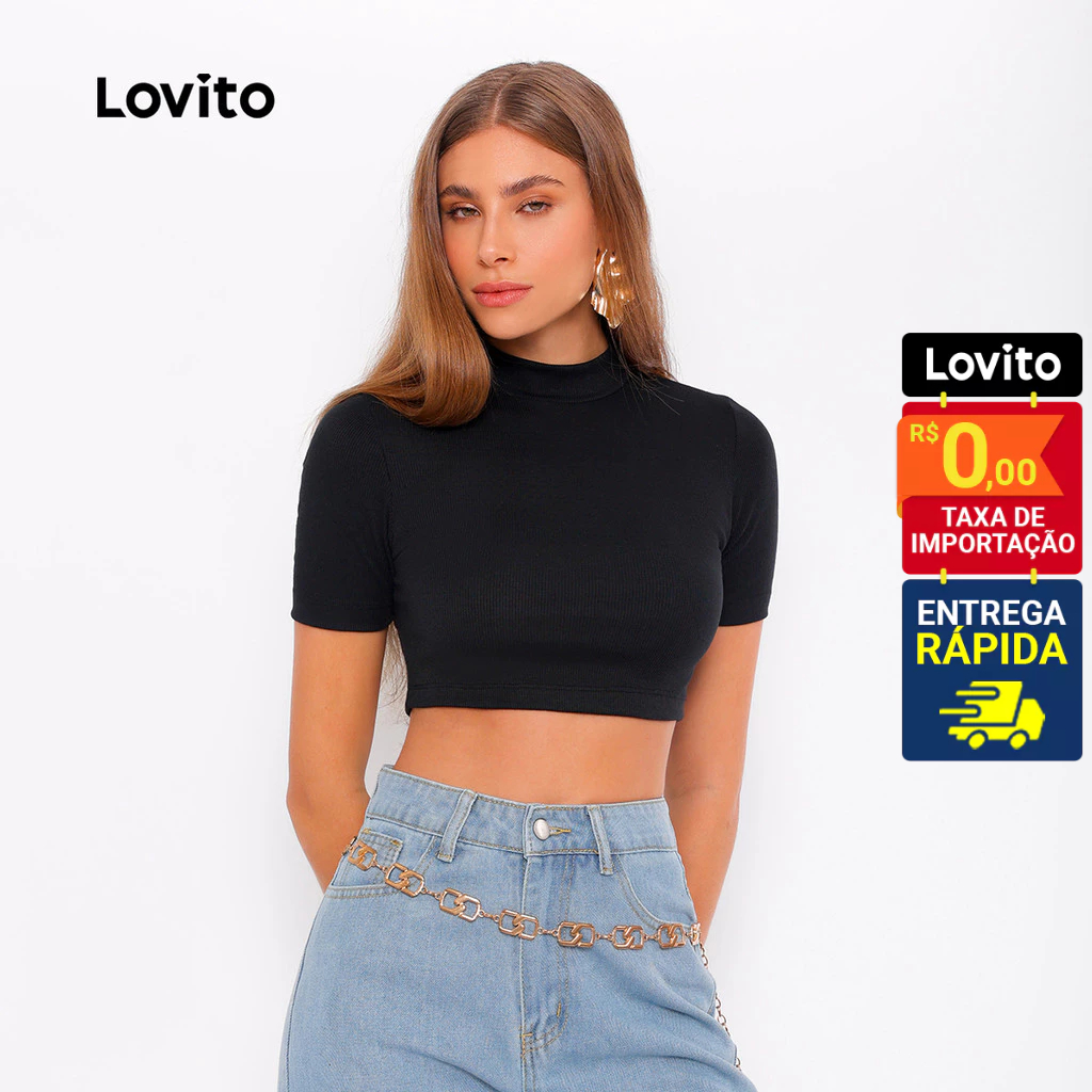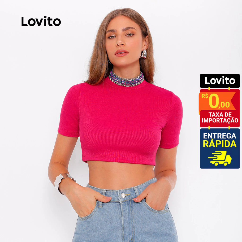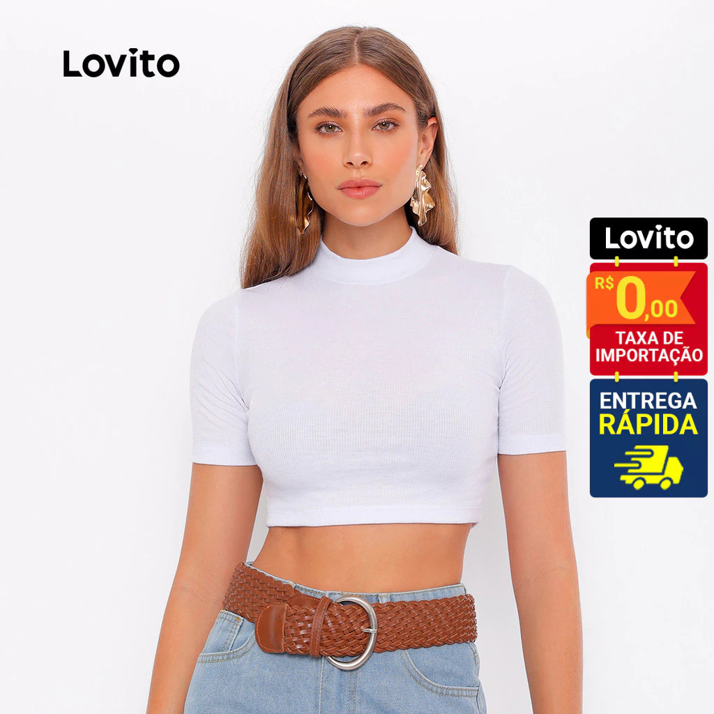 Lovito Top Camiseta Feminina Manga Curta Cropped LB711BRL741