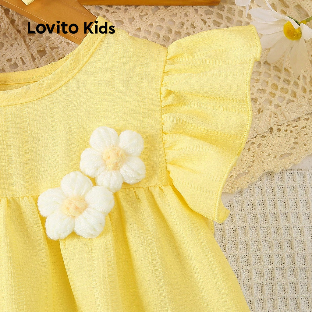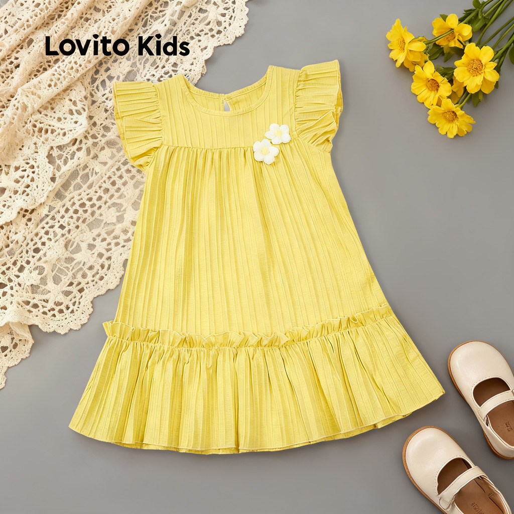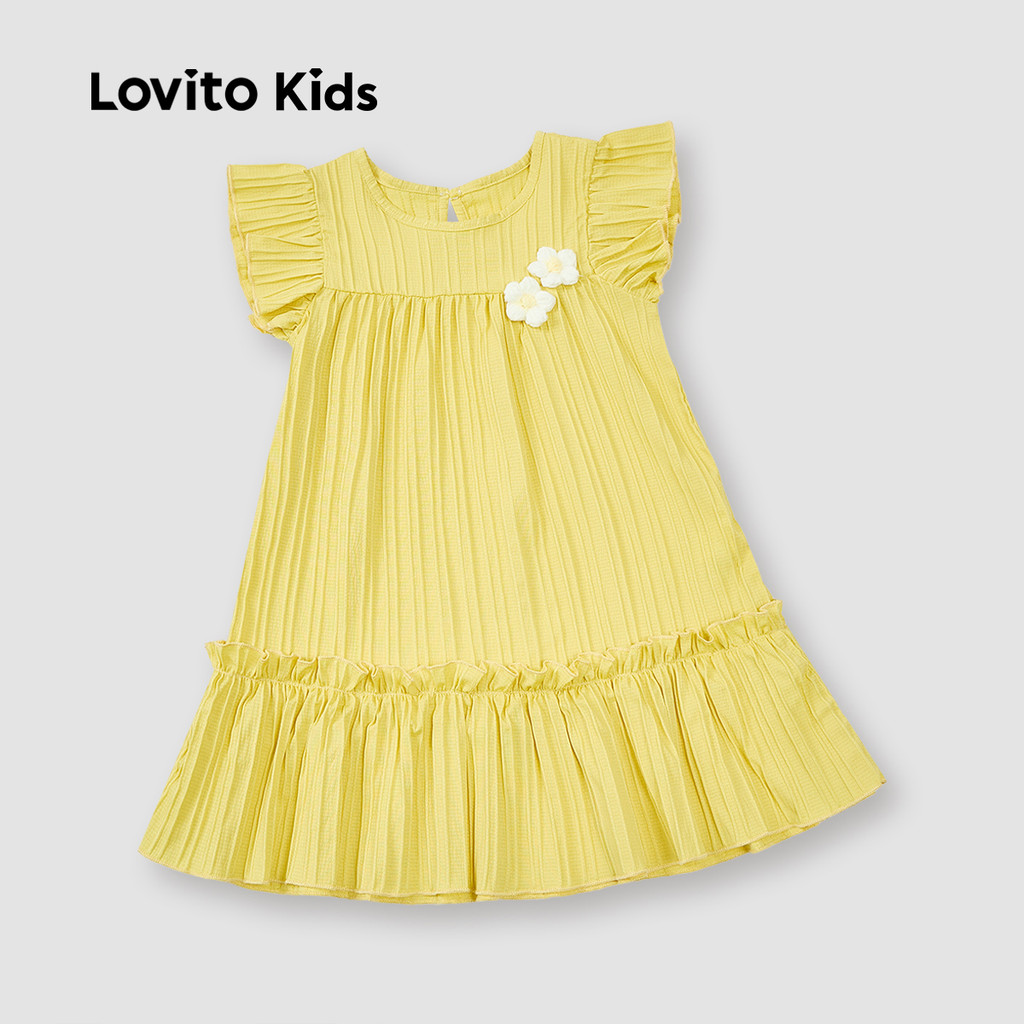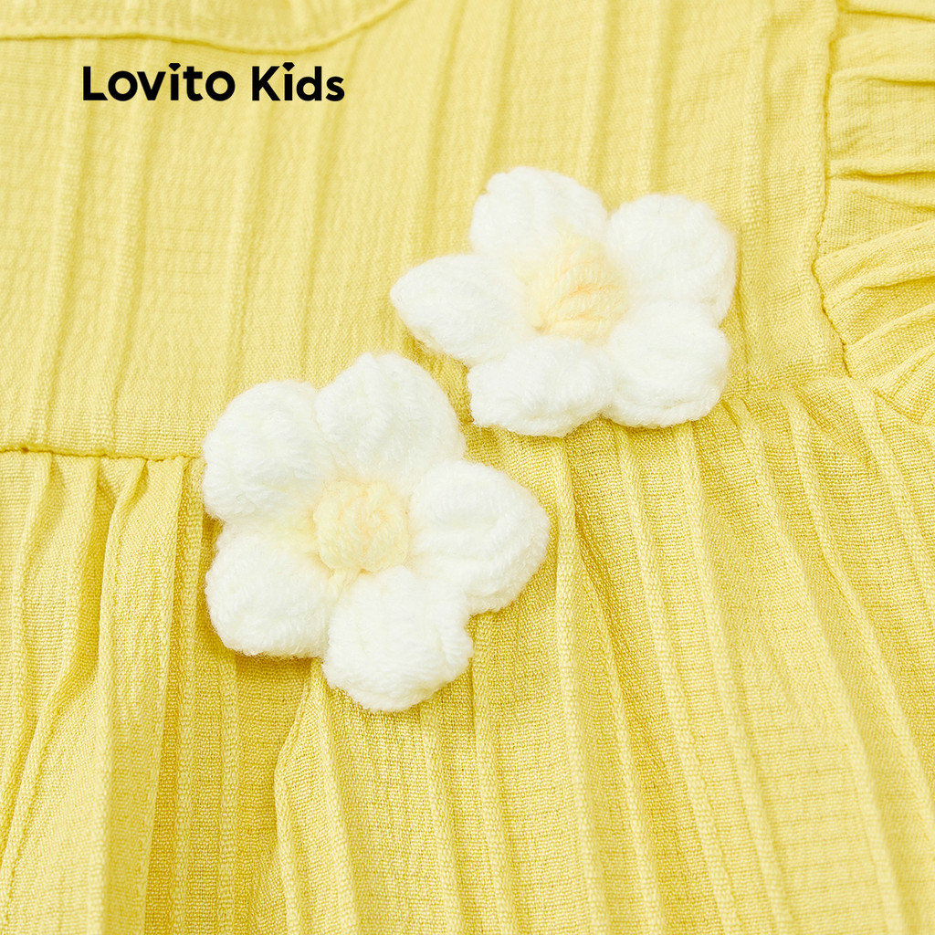 Lovito Kids Vestido Fofo em Jacquard para Primavera/verão Vestido Amarelo para menina L160LD198