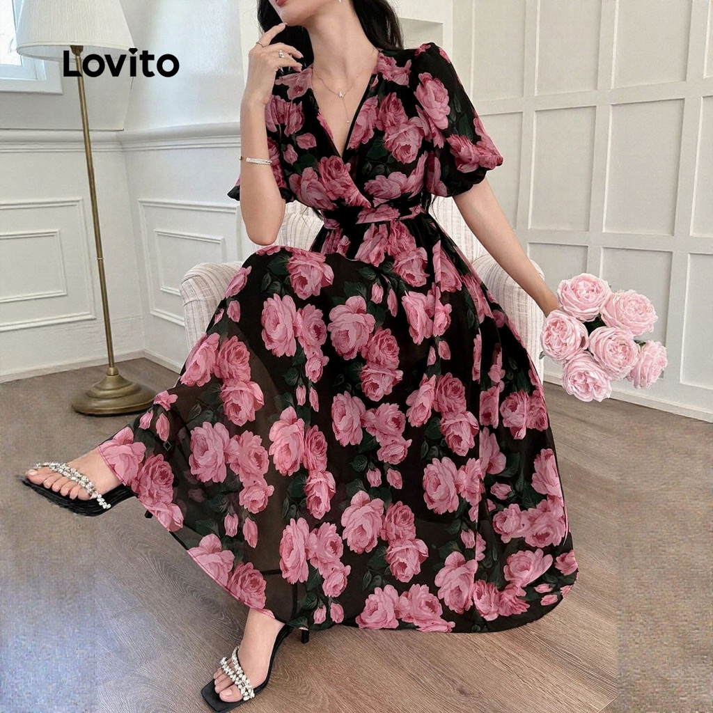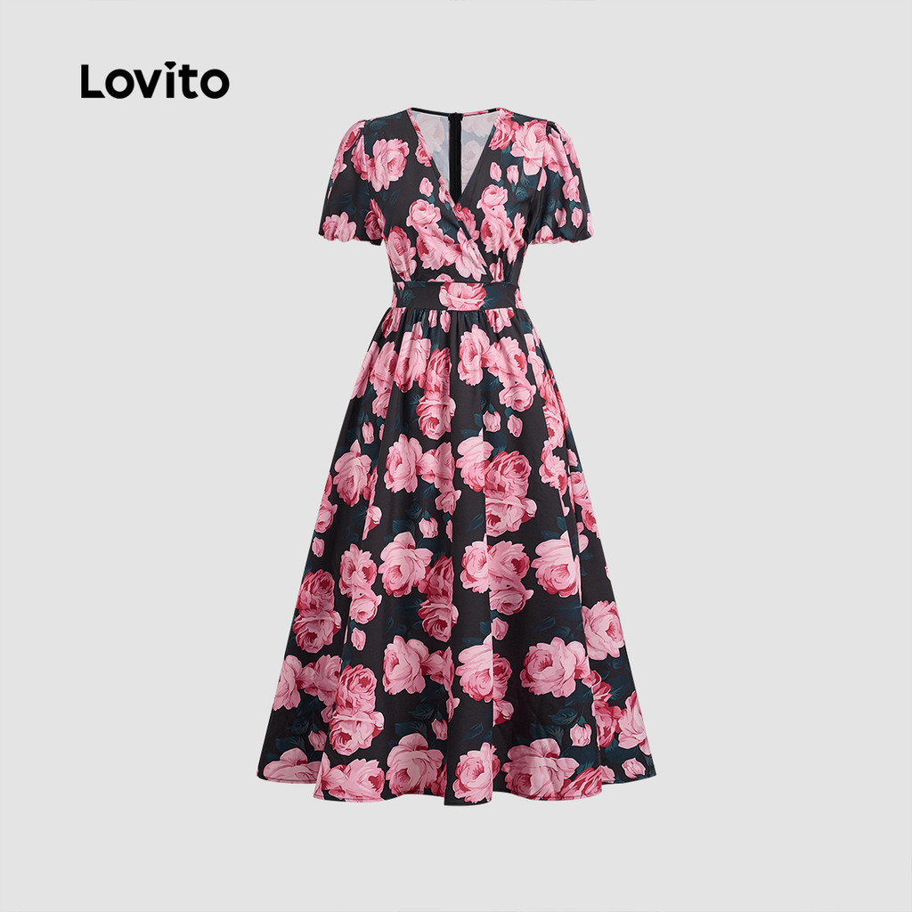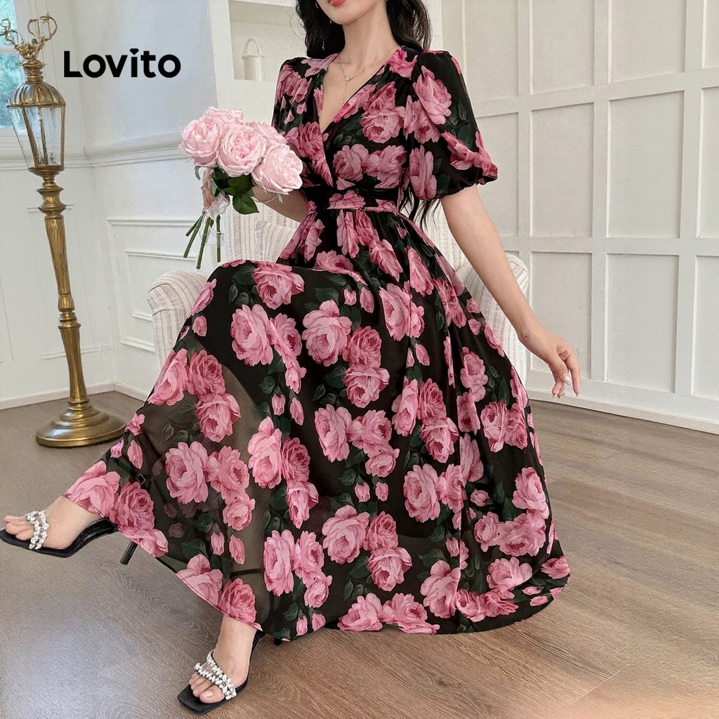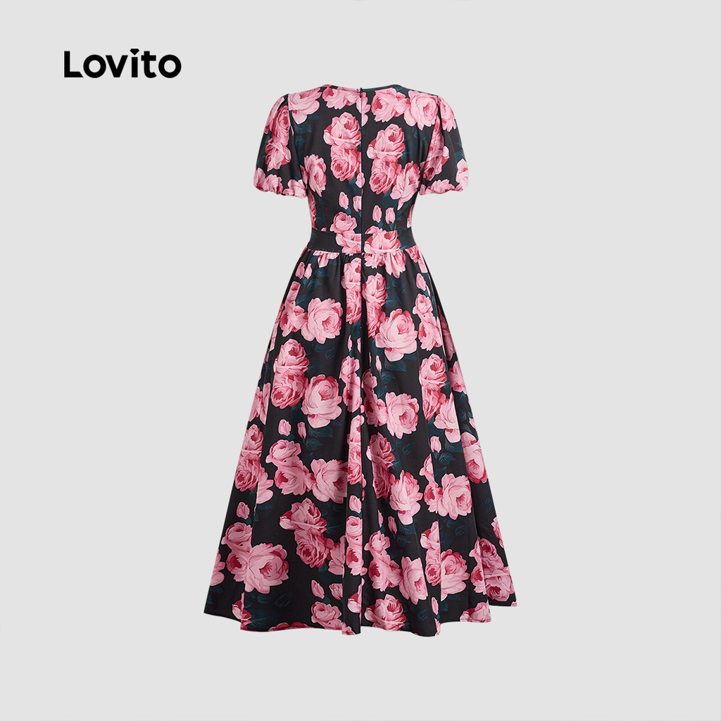 (New) Lovito Vestido Elegante com Plissado Primavera/verão para Mulheres LBL27065