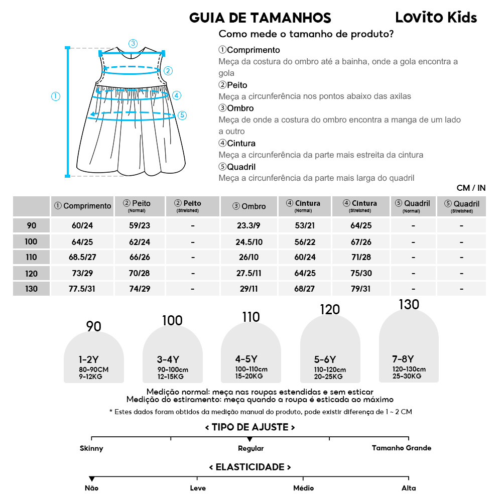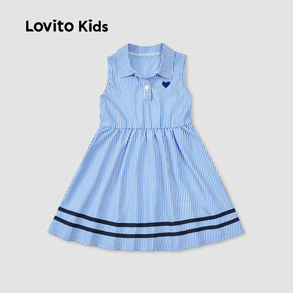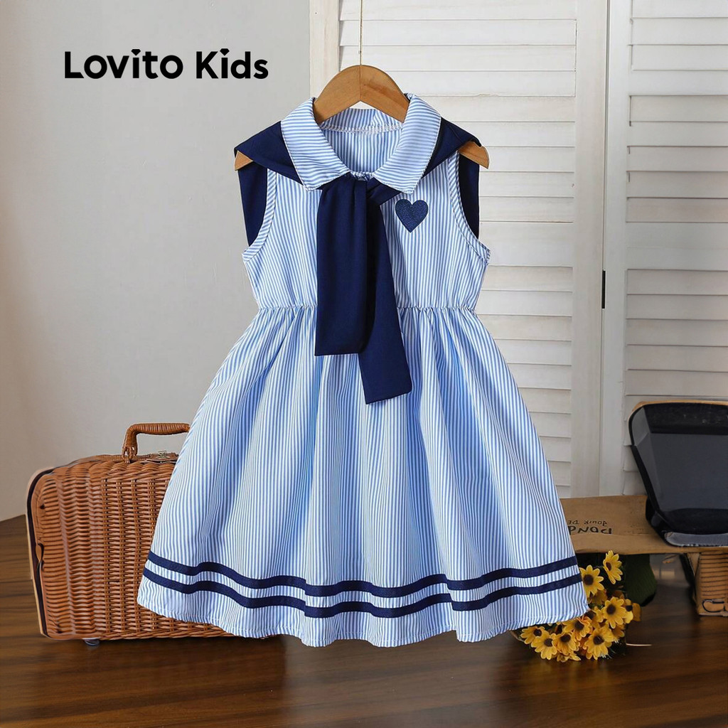Lovito Kids Vestido Fofo de Cor em Bloco Primavera/verão Azul para menina L160LD194