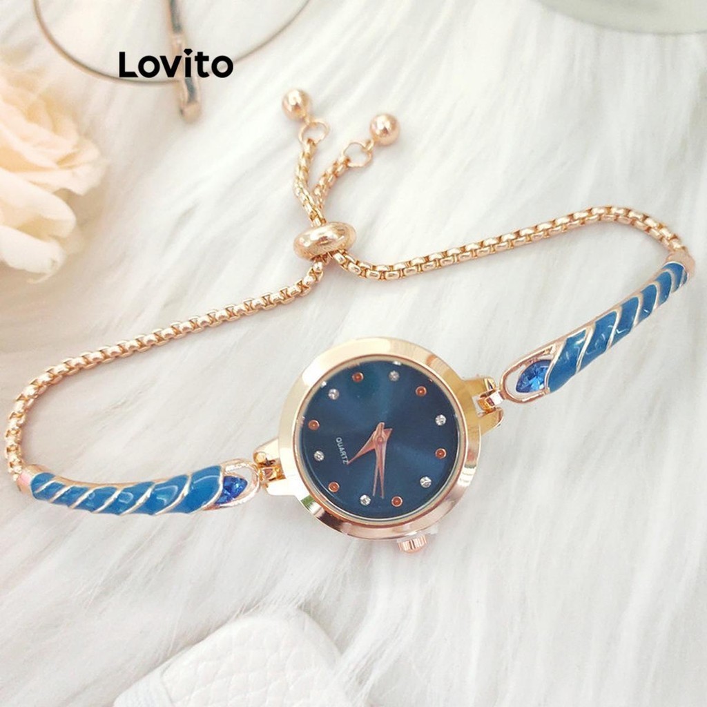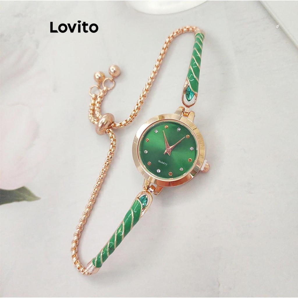 Lovito Elegante relógio de quartzo à prova d'água com strass liso e esmalte para mulheres LFA30366