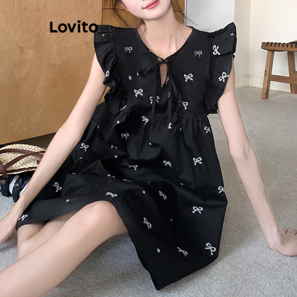 Lovito Vestido Casual Ditsy Floral Laço Frontal Manga Babado Vestido De Verão/Primavera Para Mulheres L117AD063