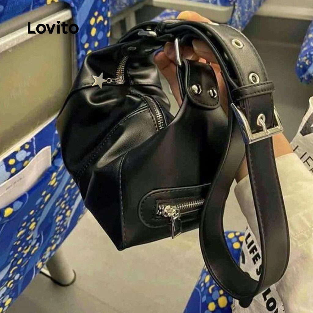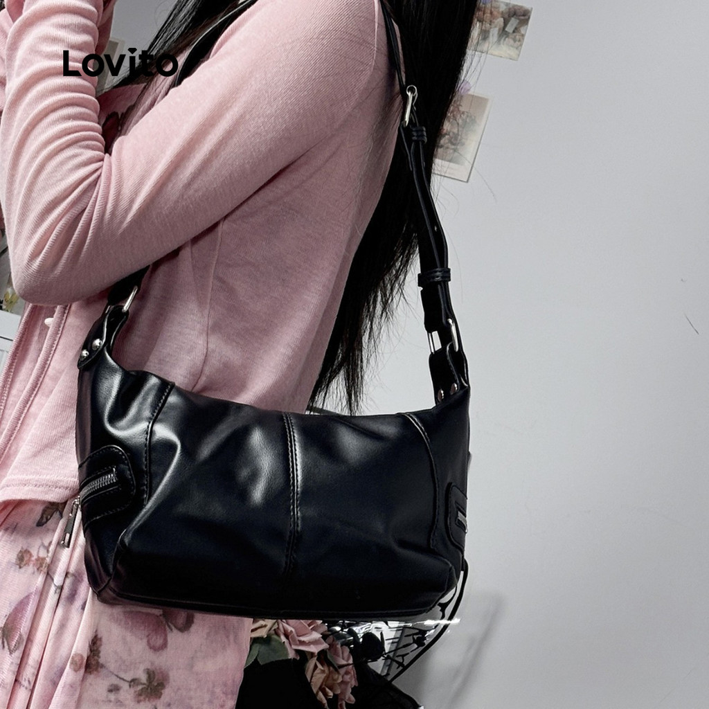 Lovito Casual liso Retro versátil emenda sela saco pequena bolsa de ombro para mulher LFA60138