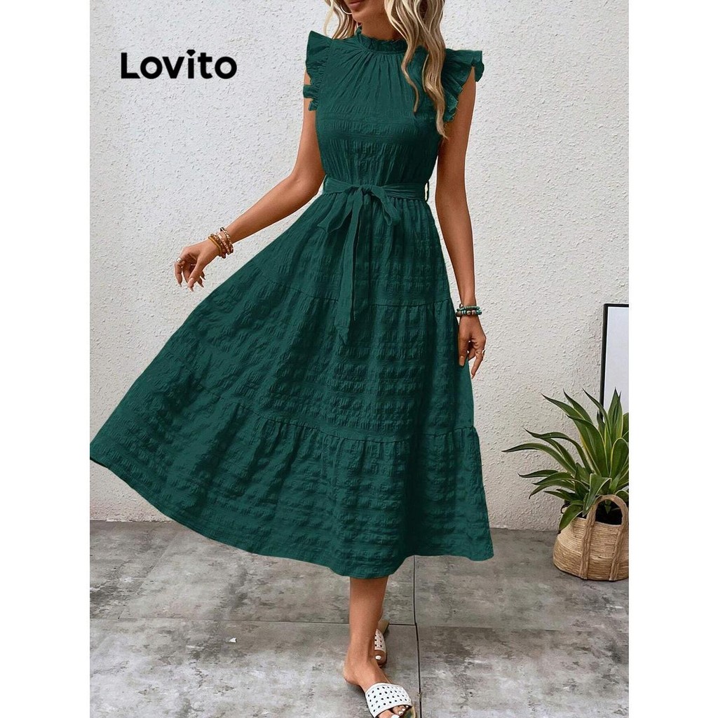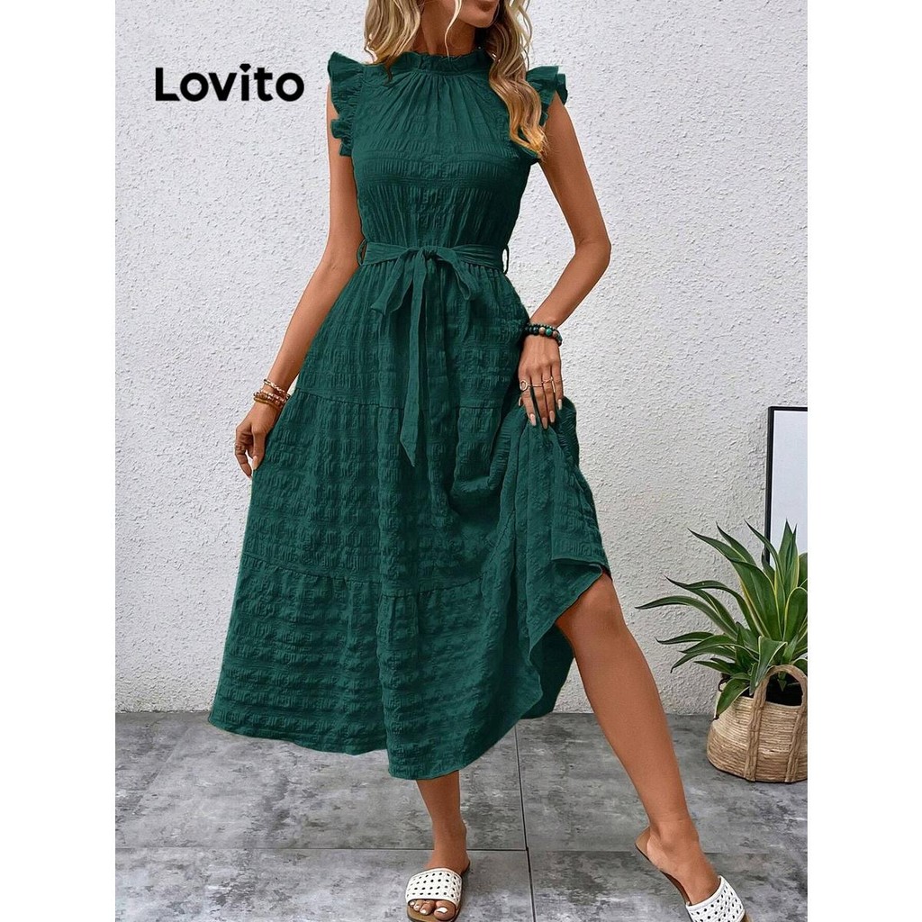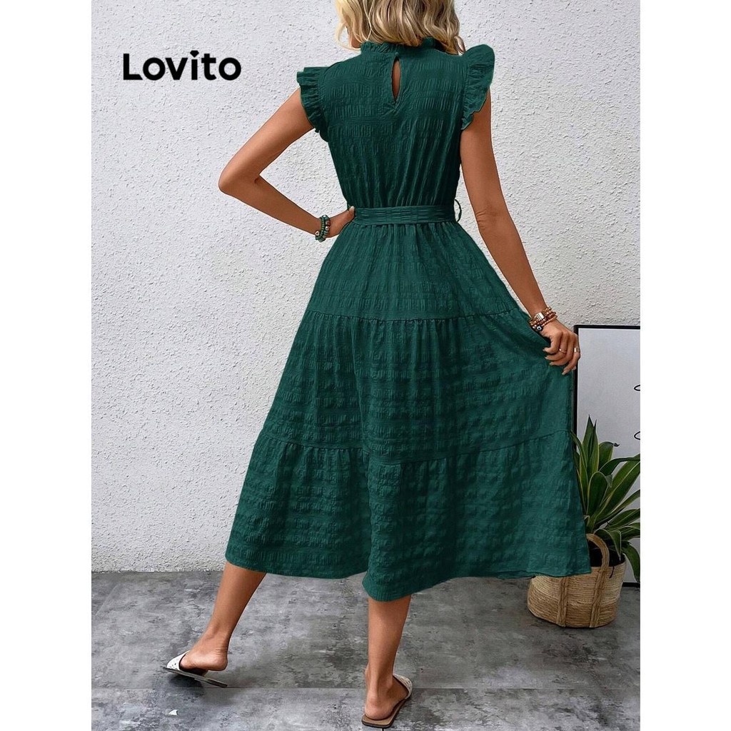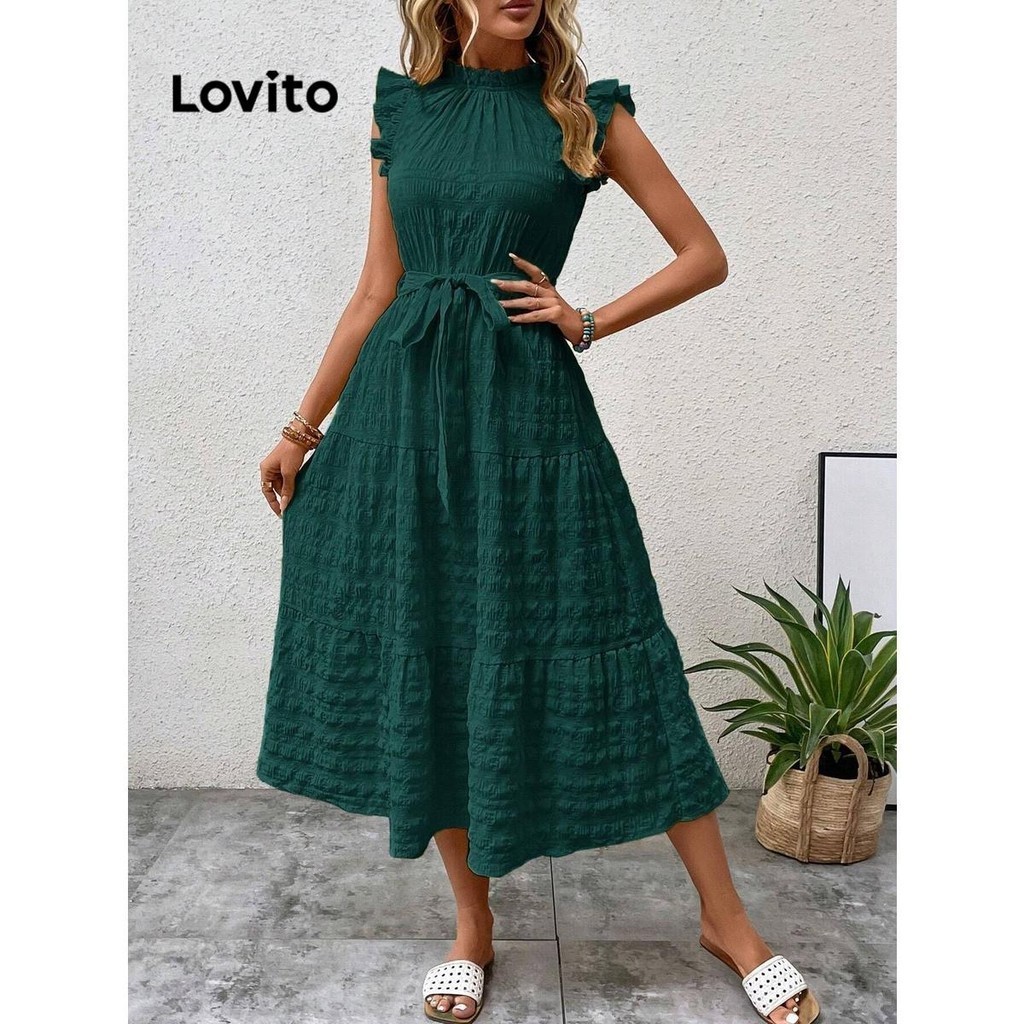 (KOL‘s pick) Lovito Vestido casual simples com babados para mulheres LNL73072
