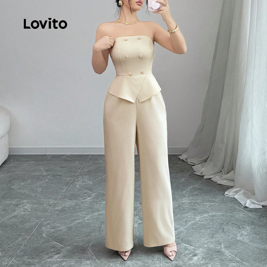 Lovito Macacão Elegante Com Botões Simples E Duplos Para Mulheres, Verão E Primavera L133ED612