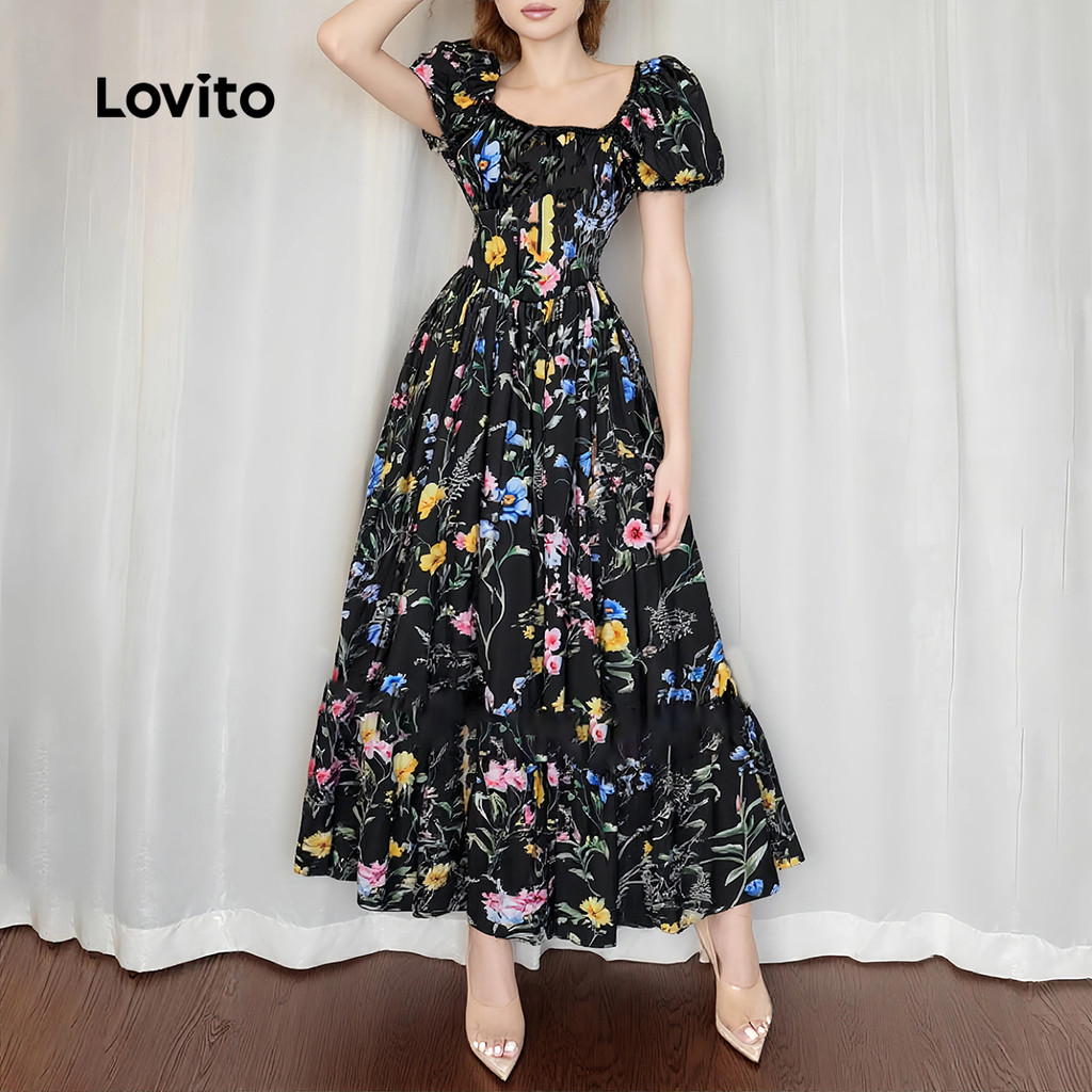 Lovito Vestido Casual Evangélico com Zíper para Primavera e Verão Feminino LBL30115