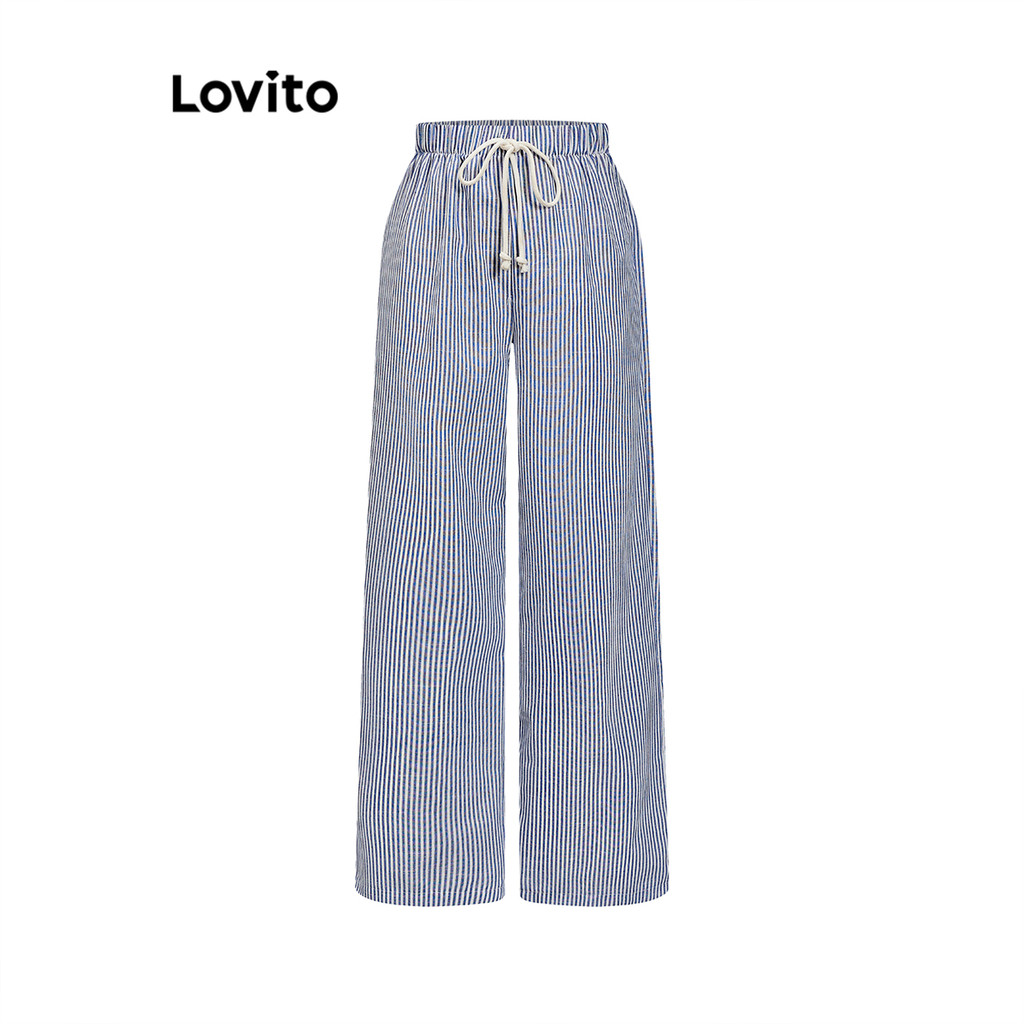 Lovito Calça Casual Listrada Com Cordão E Tecido Texturizado Para Mulheres L93AD016 (Multicolorido)