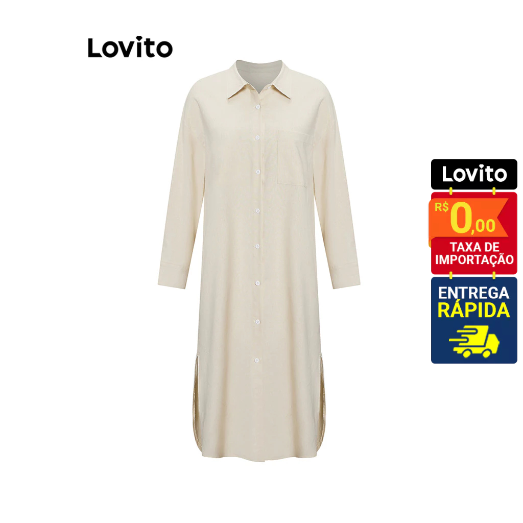 Lovito Vestido Feminino Longo Botões Frontais LNE20158