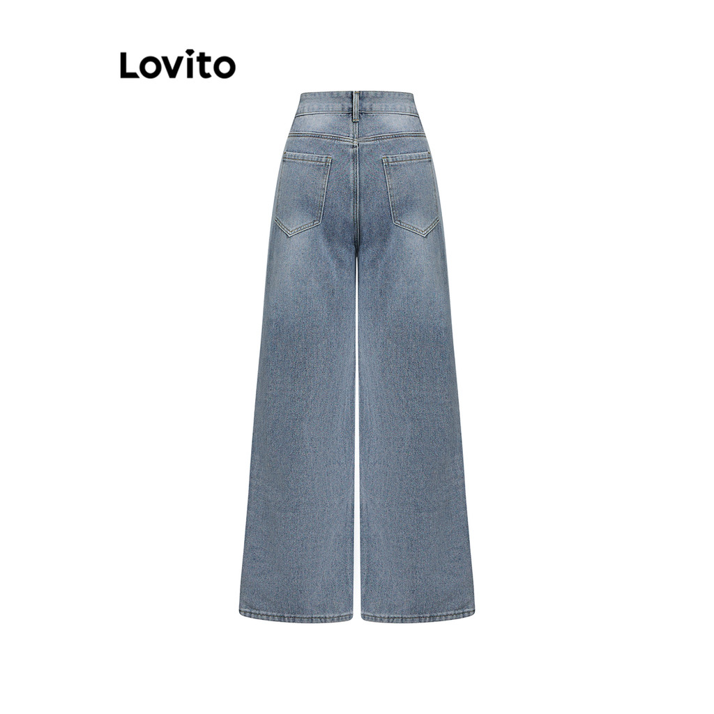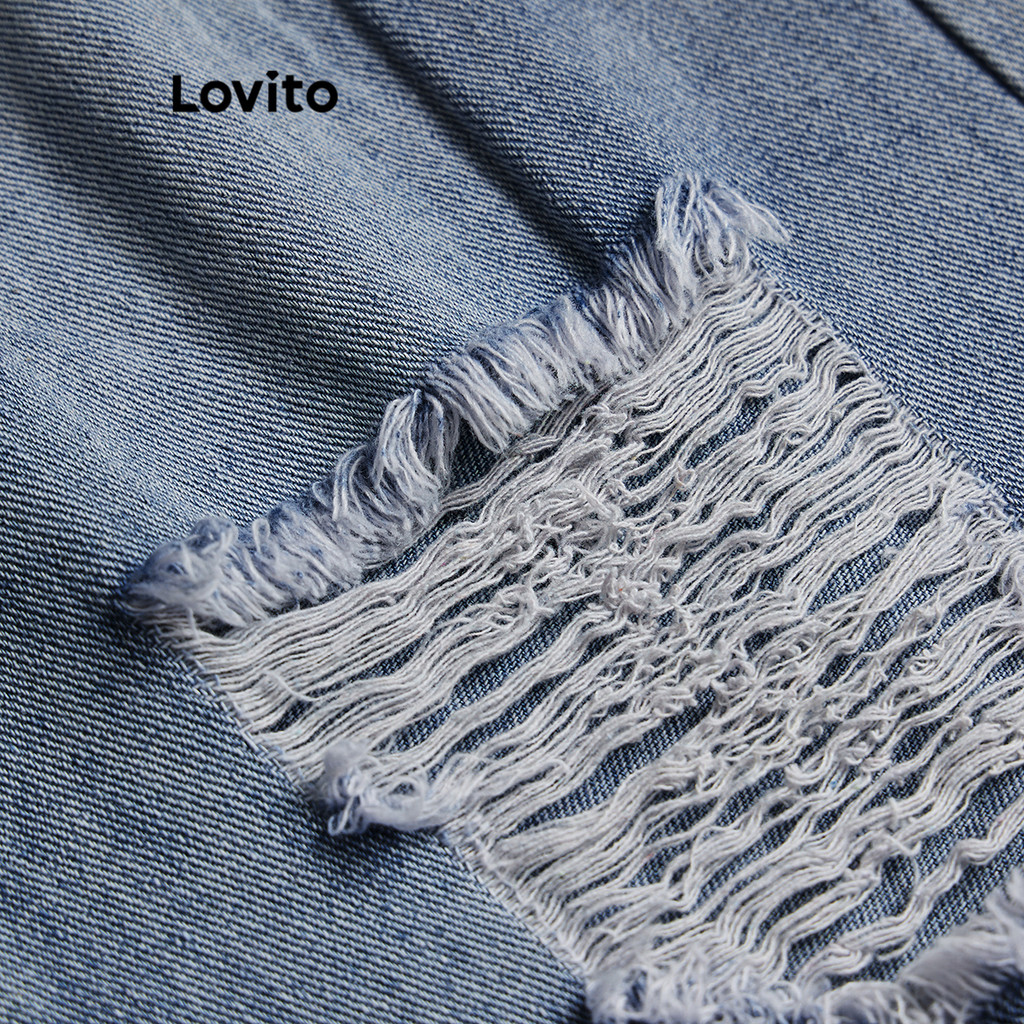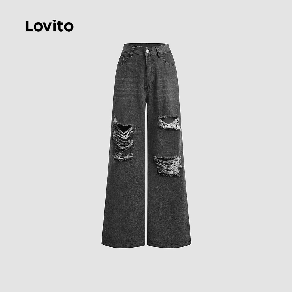 Lovito Calça Jeans Casual Lisa E Rasgada Para Mulheres L105MD065
