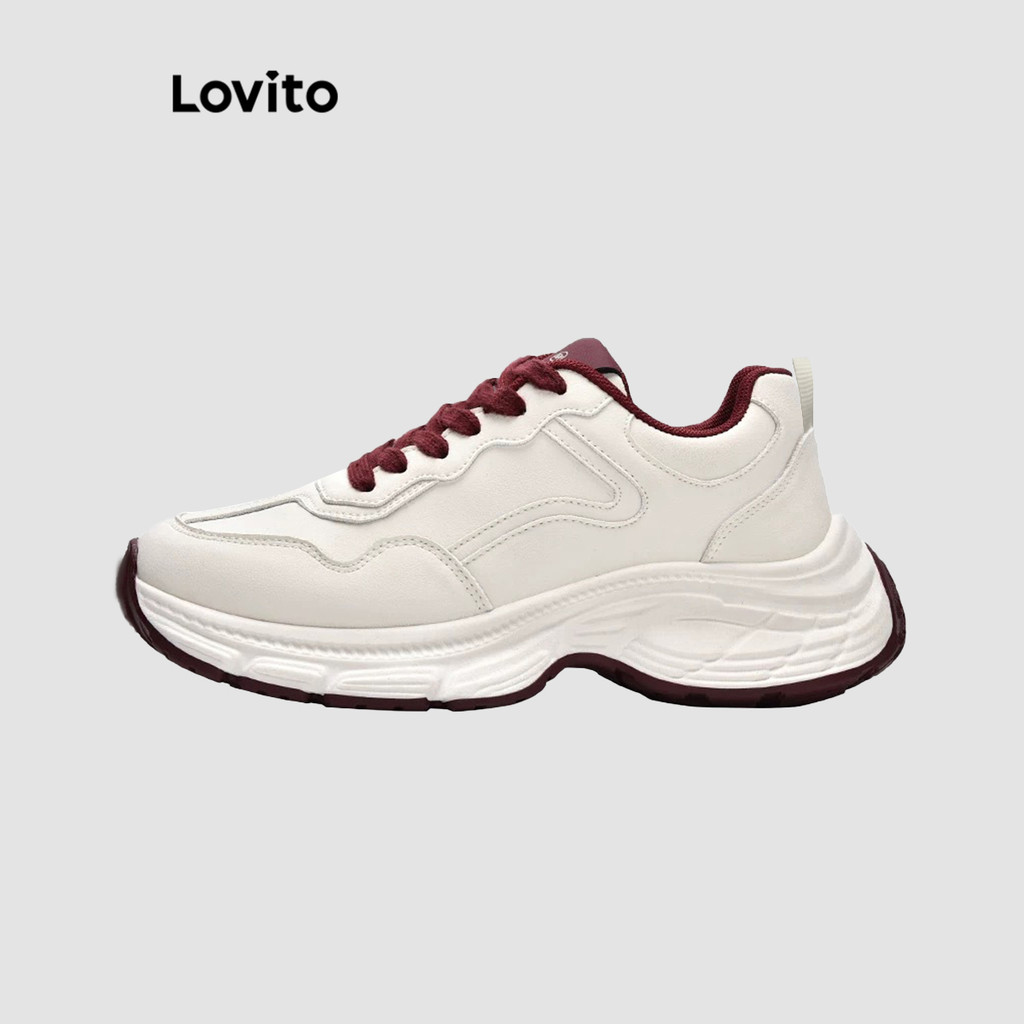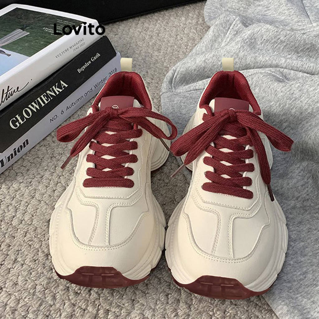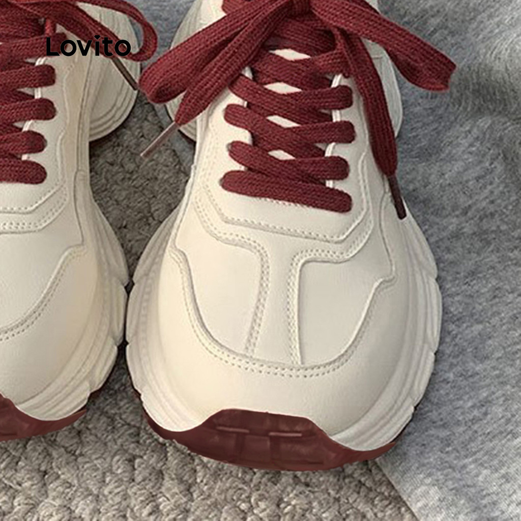 Lovito Esporte simples nicho sola grossa vermelho e branco simples na moda pai sapatos tênis para mulher LFA59283