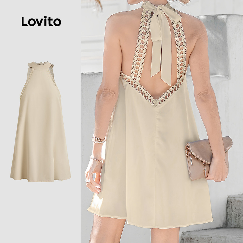 Lovito Vestido Boho Com Amarração Nas Costas Macio E Confortável Primavera/verão Vestido Damasco Para Mulheres L137ED807