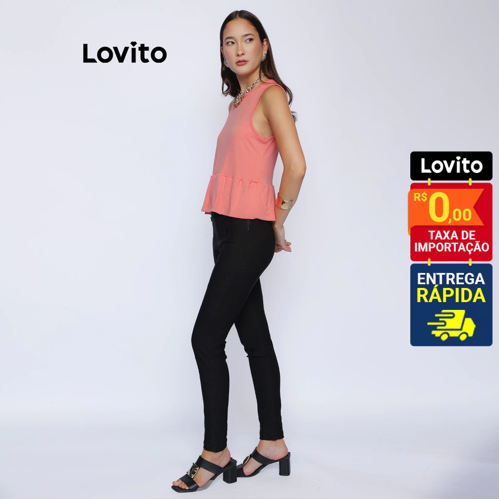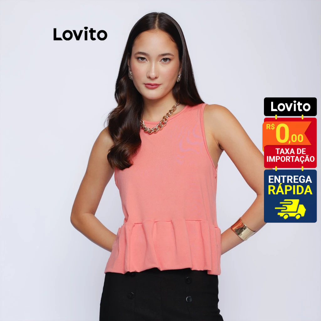 Lovito Regata Peplum Lisa Moda Feminina LB987BRL1017