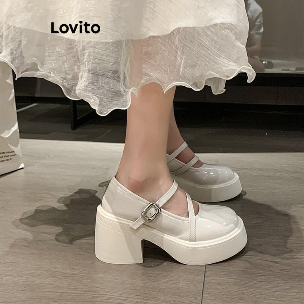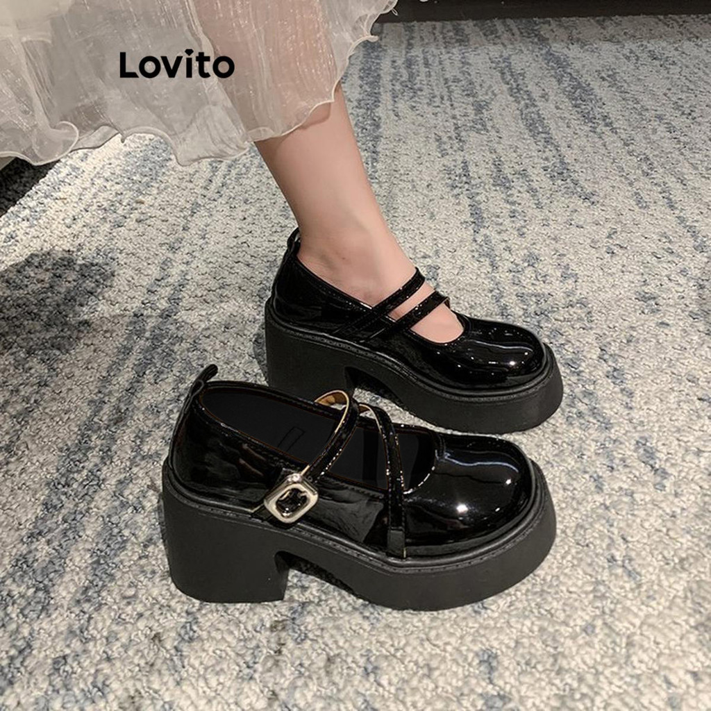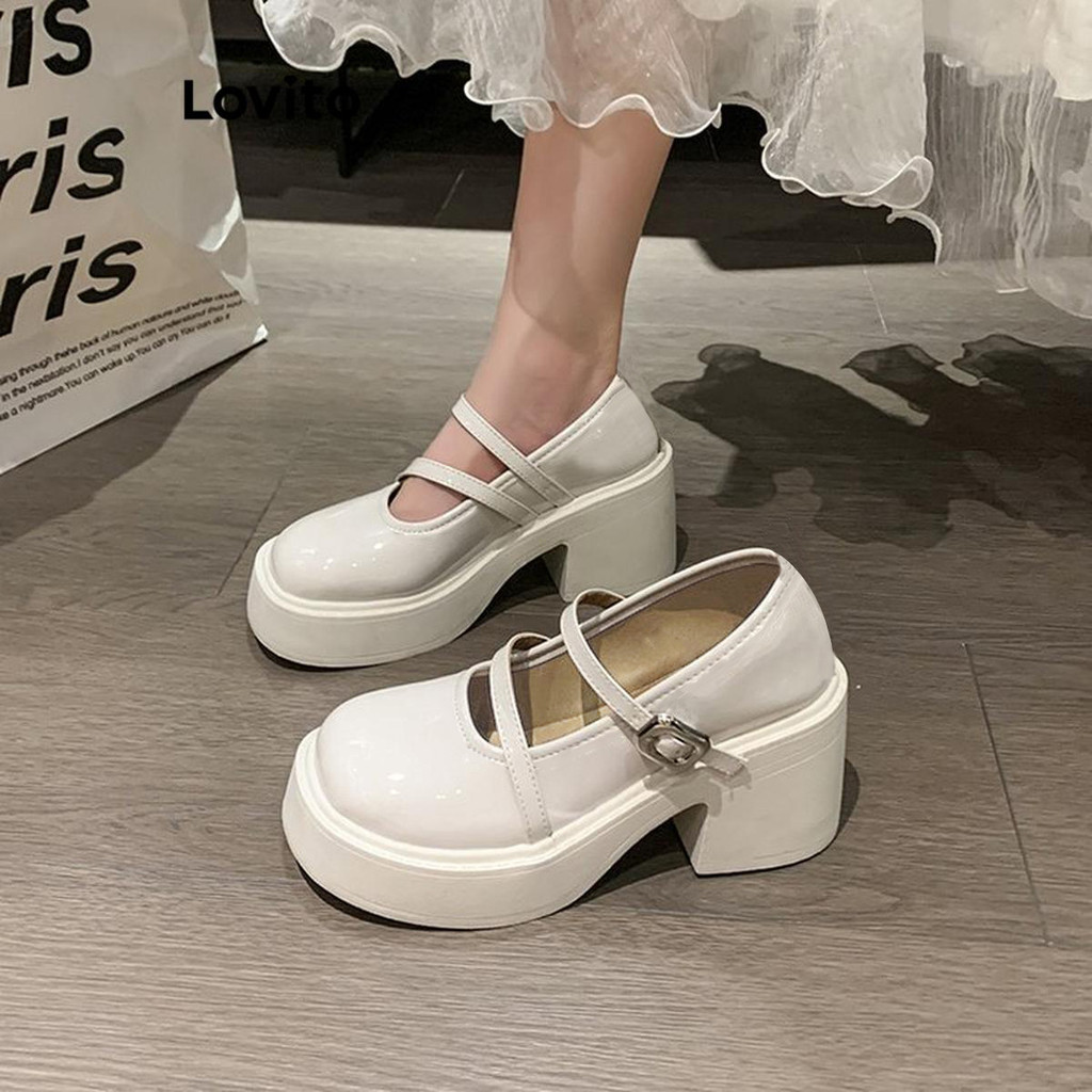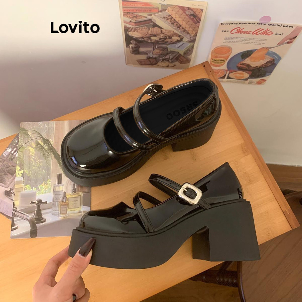 Lovito Elegante Simples Cabeça Redonda Retro Salto Alto Mary Jane Estilo Preppy Salto para Mulheres LFA58318
