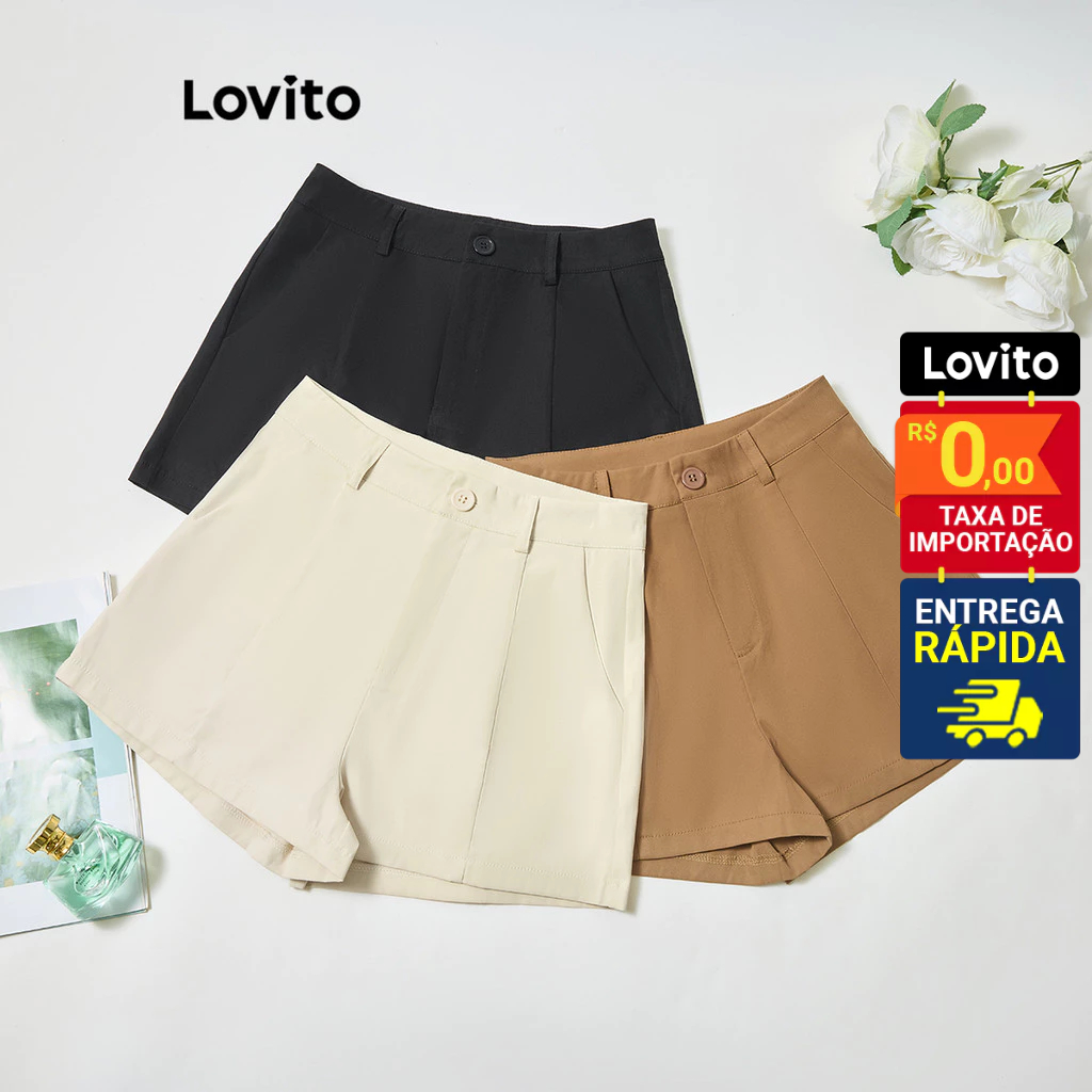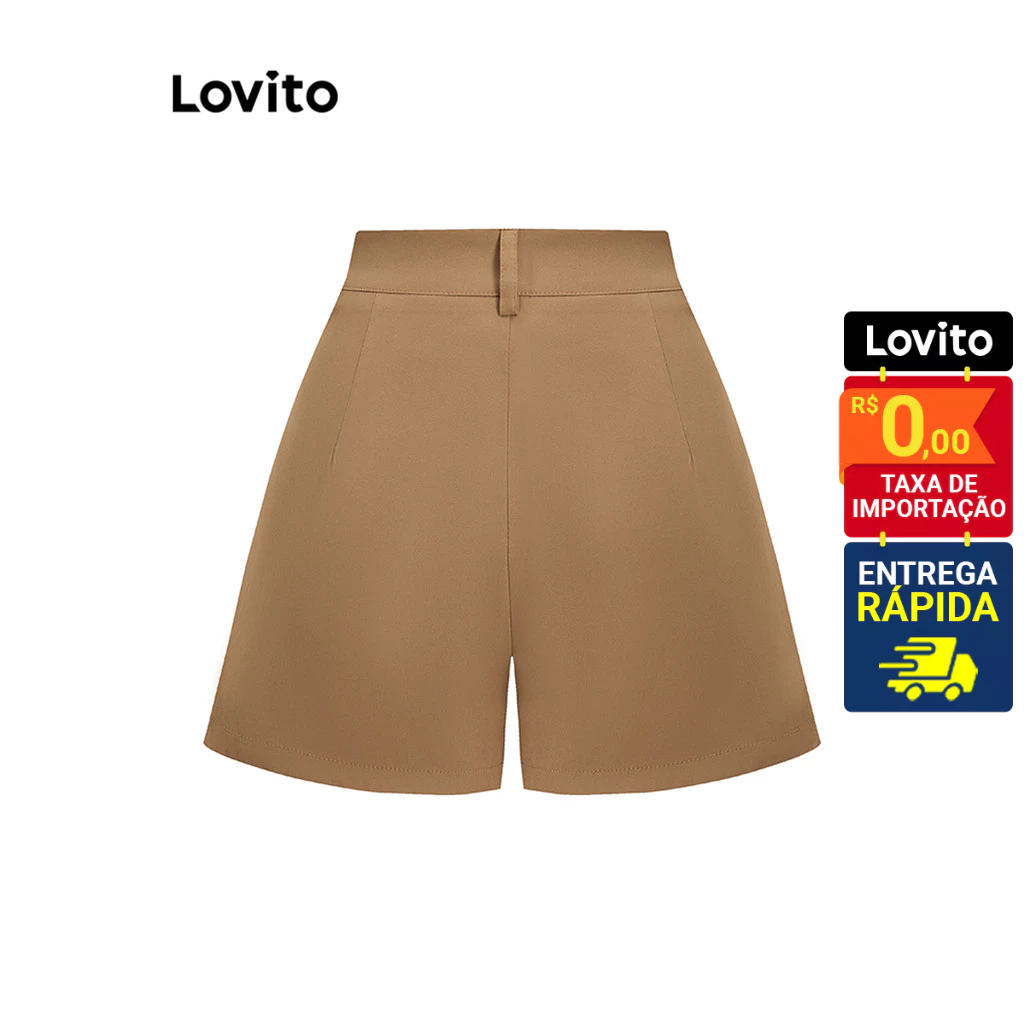 Lovito Shorts Feminino Curto Liso Alfaiataria LNE43028