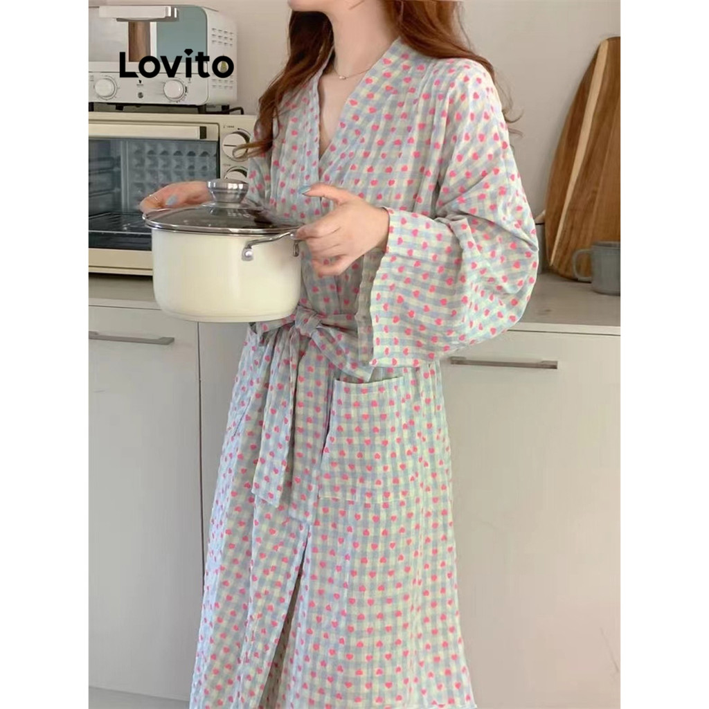 Lovito Robes femininos casuais com gravata floral Ditsy na frente LNA75661