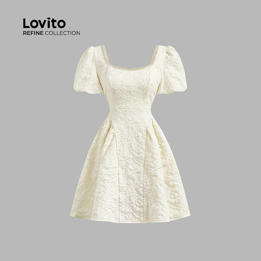 (Lovito Refine) Vestido elegante de pérolas Jacquard liso para mulheres LR4ED043