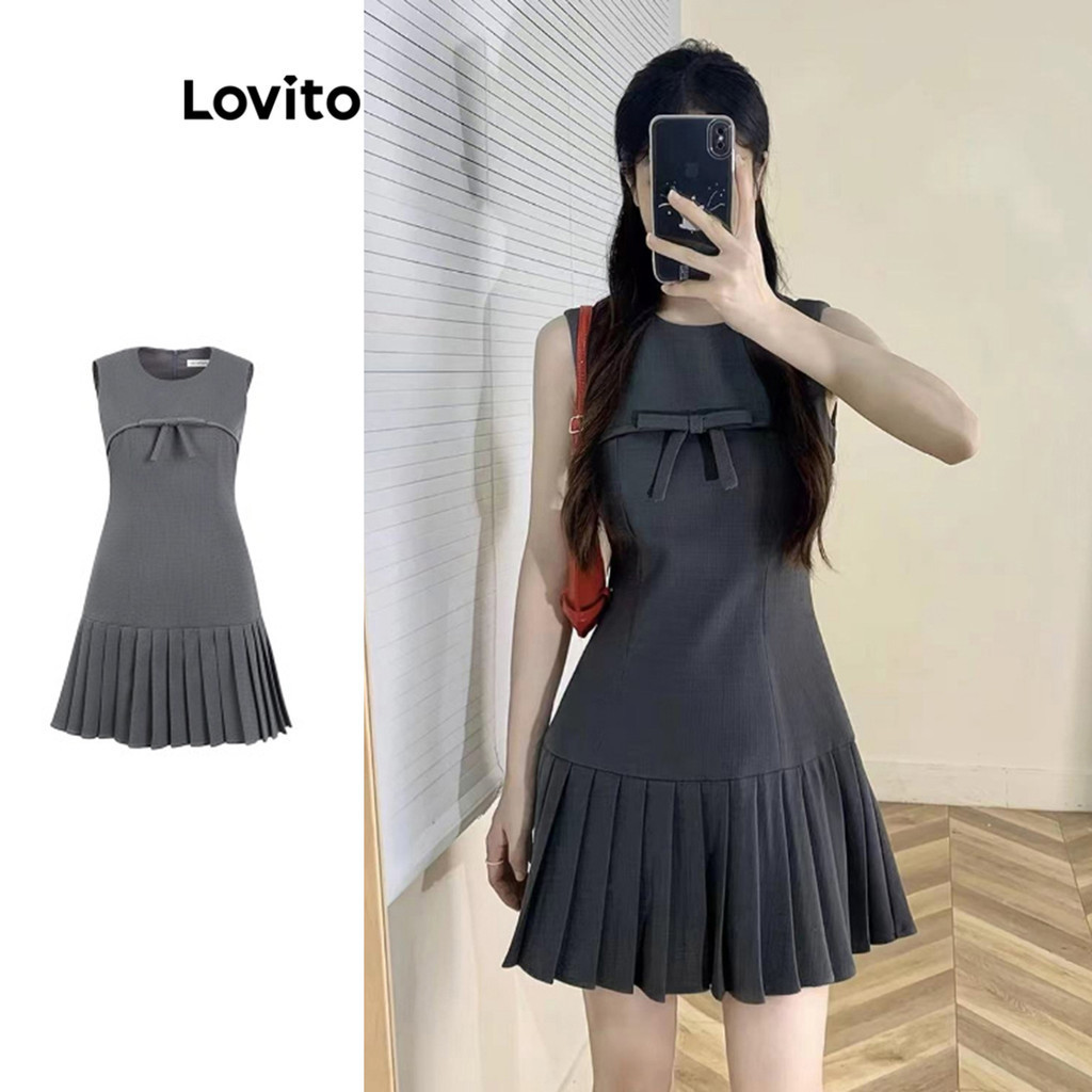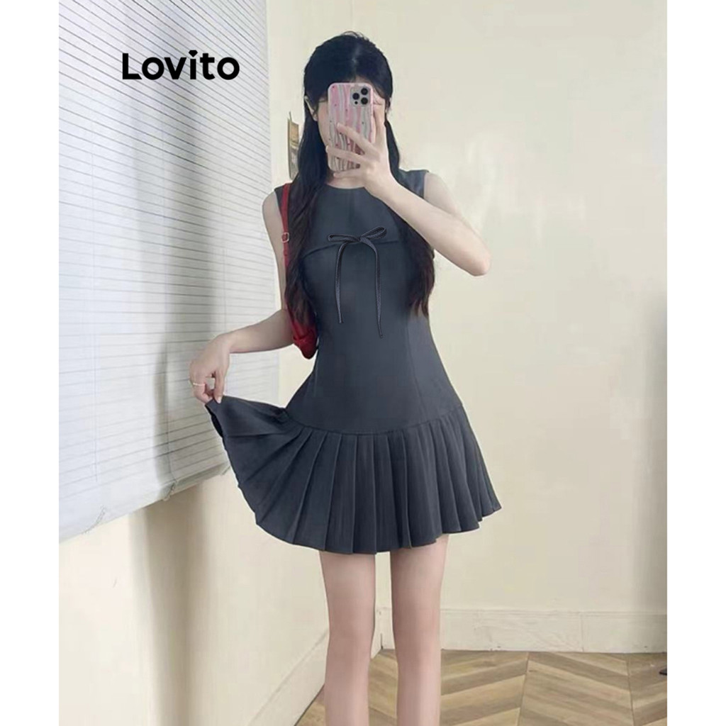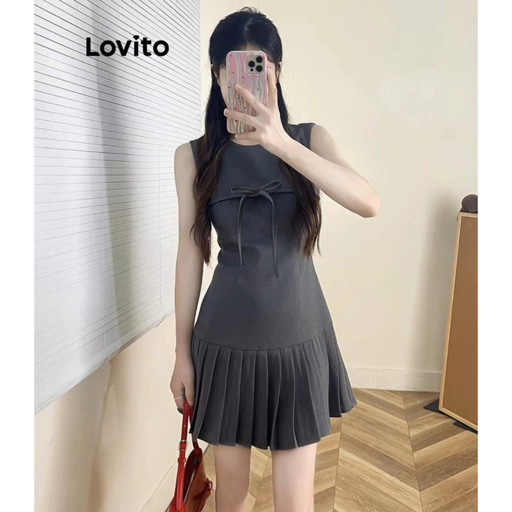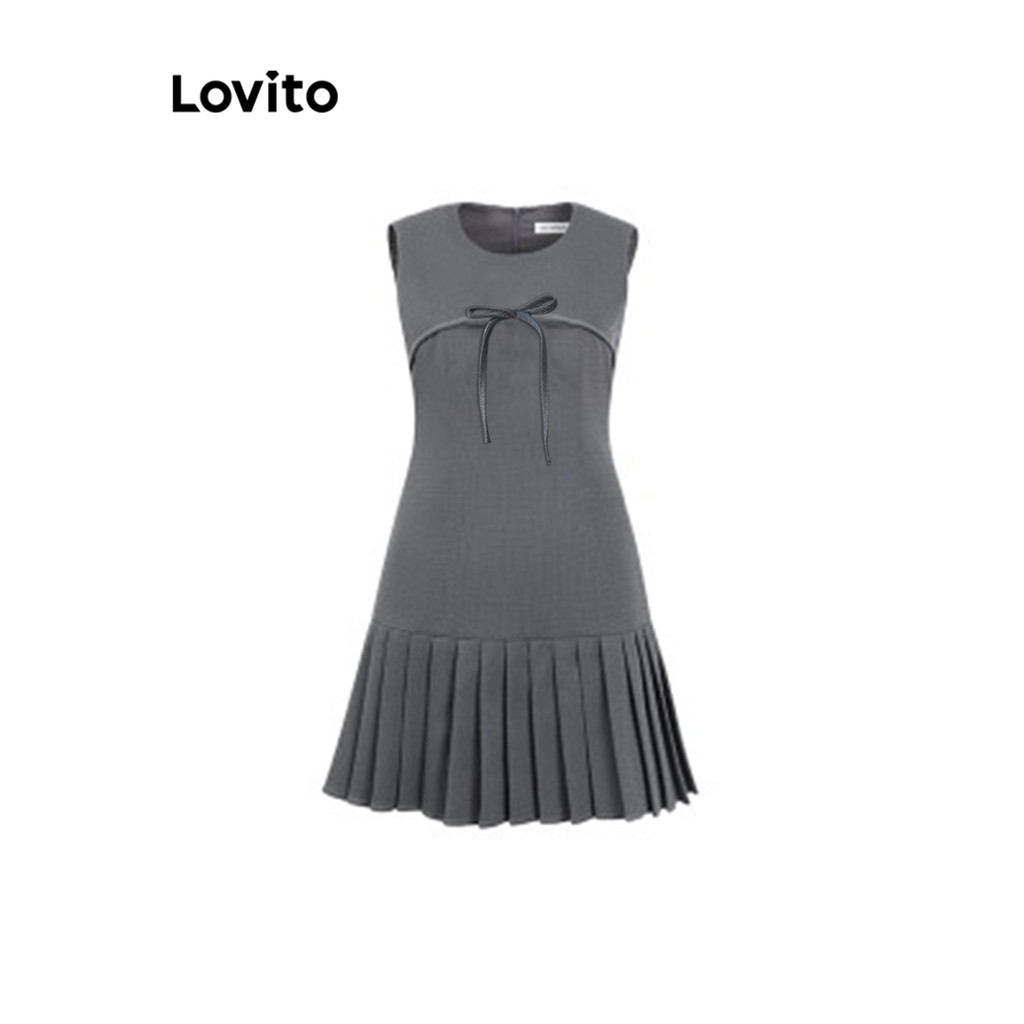 (Trendy) Lovito Vestido Casual Vestido Liso Com Laço Para Mulheres LNA71500