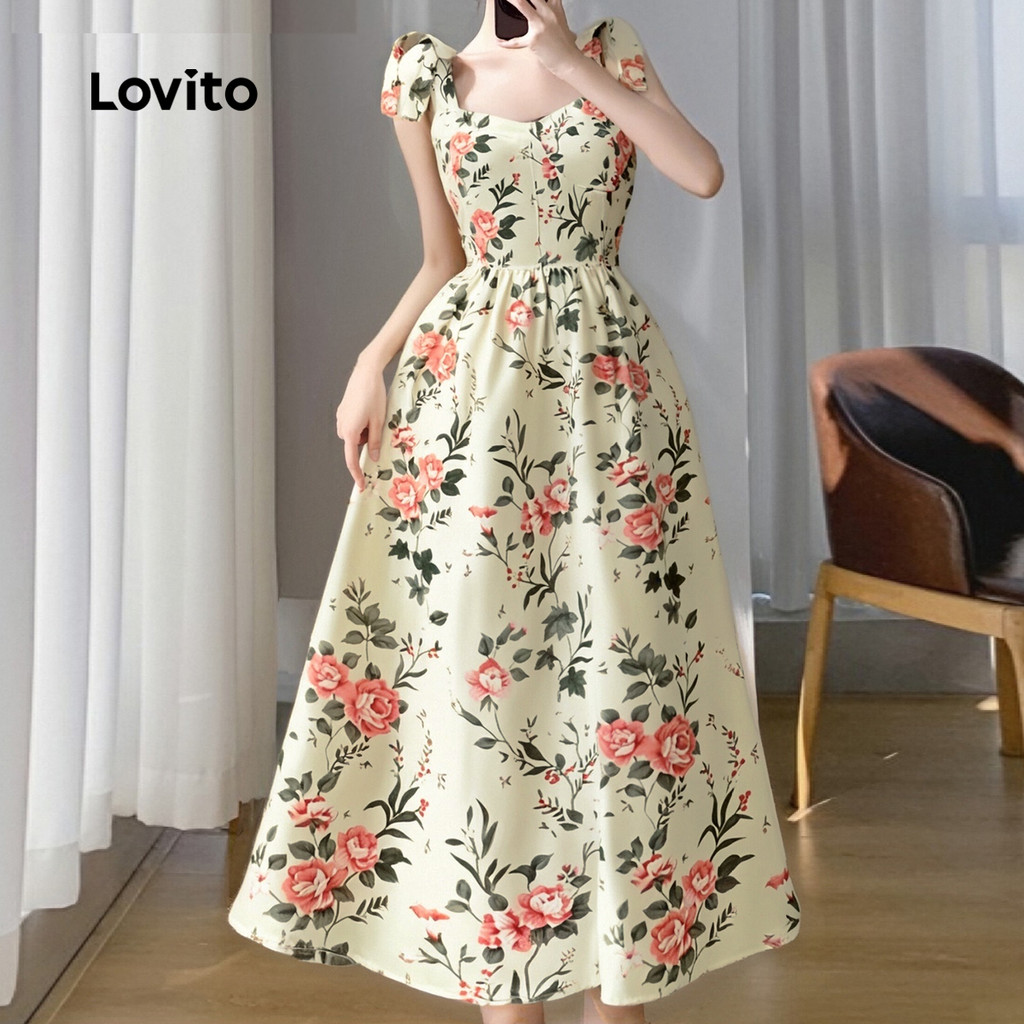 Lovito Vestido Casual Feminino Floral Tecido Costurado Verão/Primavera L131LD1304
