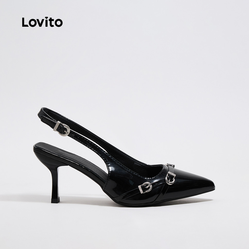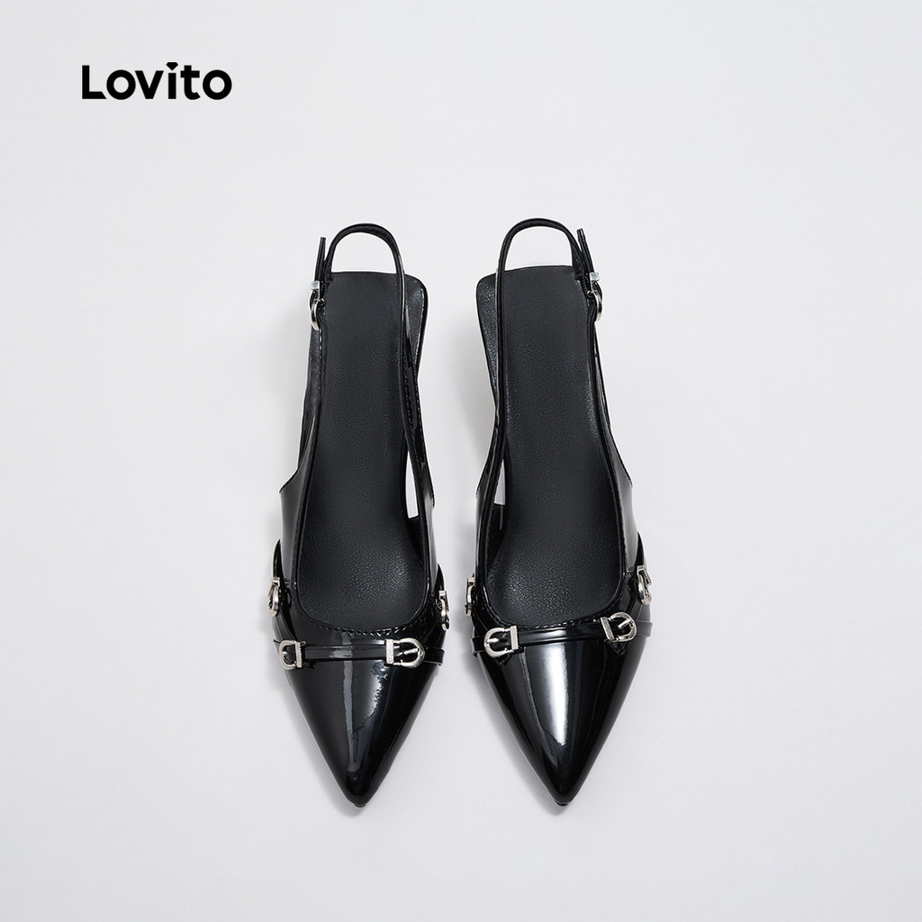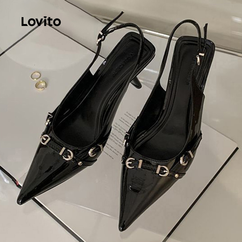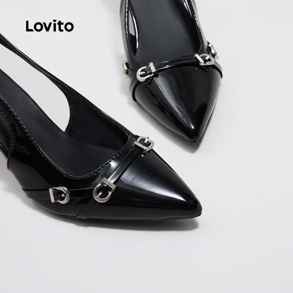 Lovito Saltos elegantes de metal liso com ponta pontiaguda para mulheres LFA45040\6