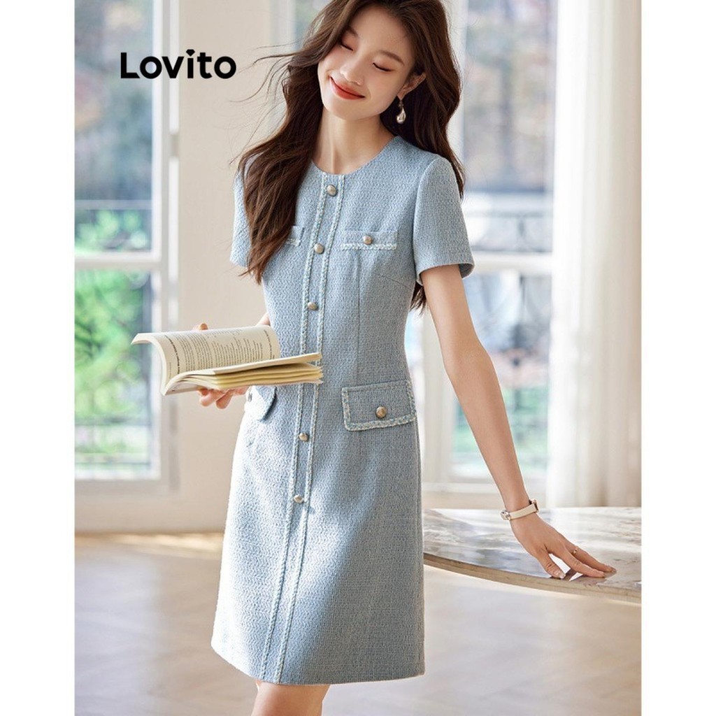 Lovito Vestido Elegante Com Bolso Falso E Botão Frontal Vestido De Verão/Primavera Para Mulheres LNE59301