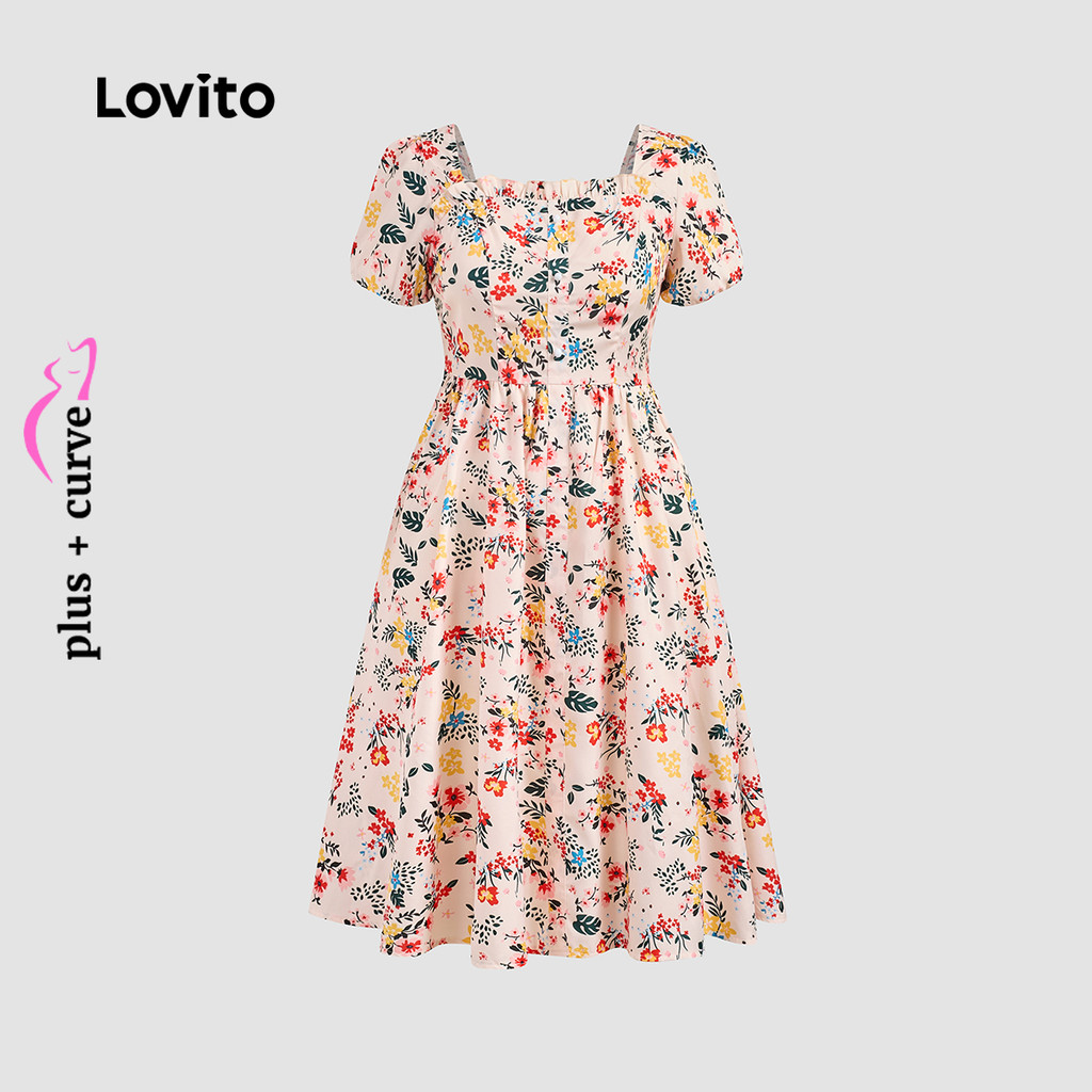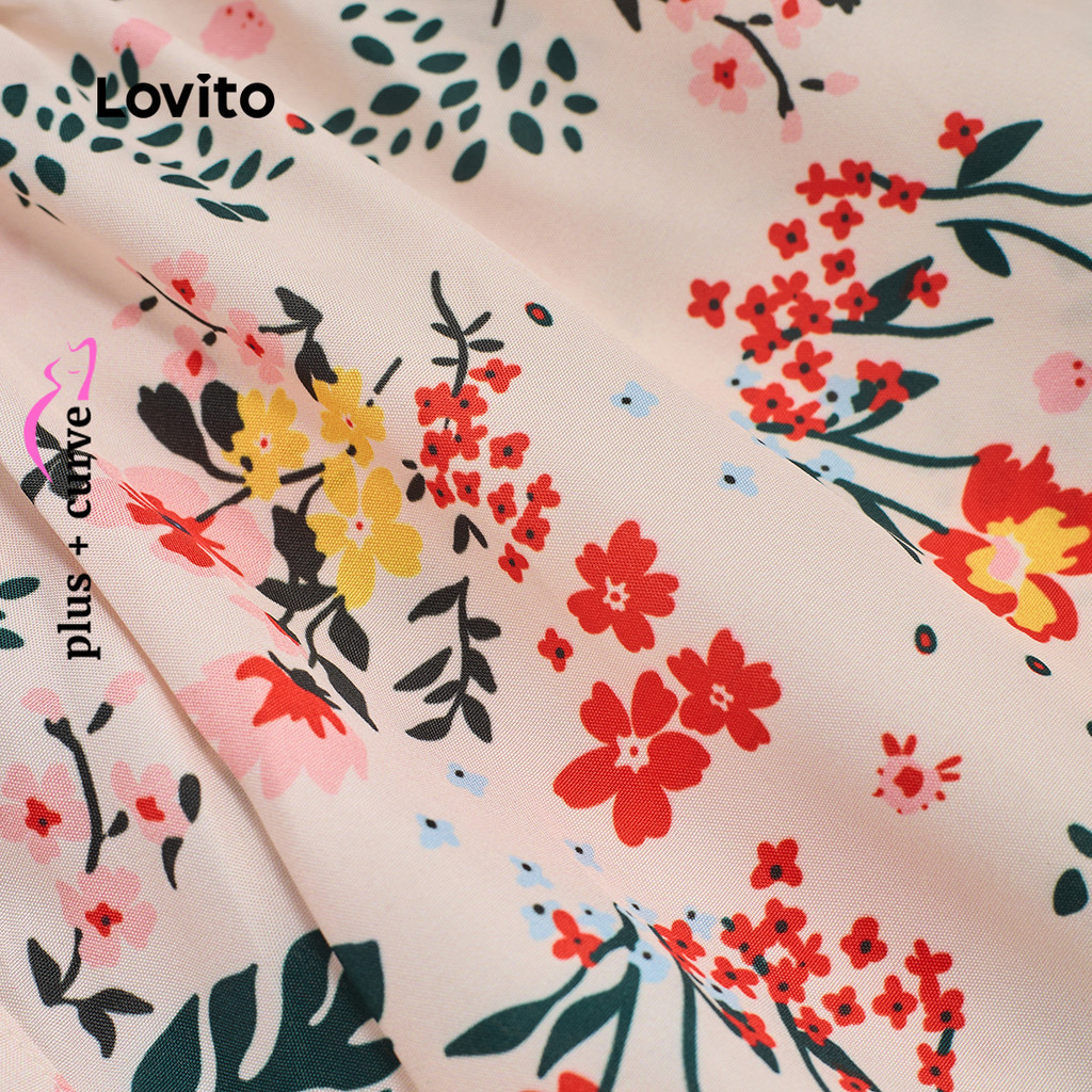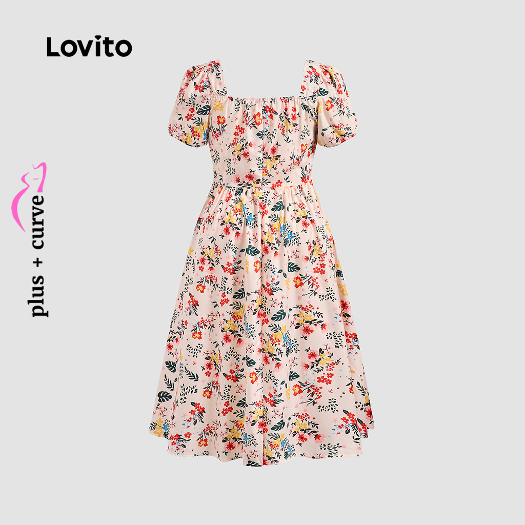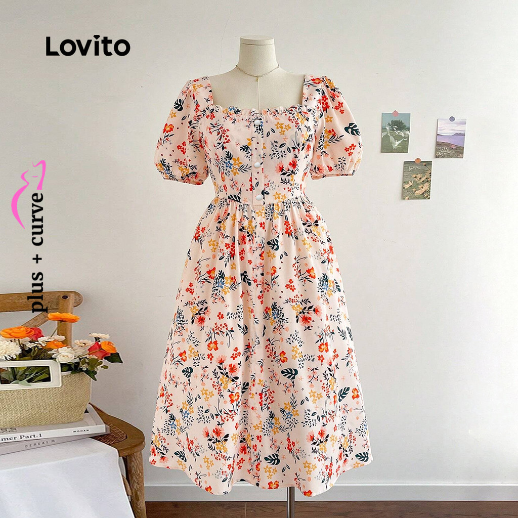 Lovito Vestido Casual Feminino Plus Size Com Babados Florais E Botões Na Frente Vestido De Verão/primavera LBL24105