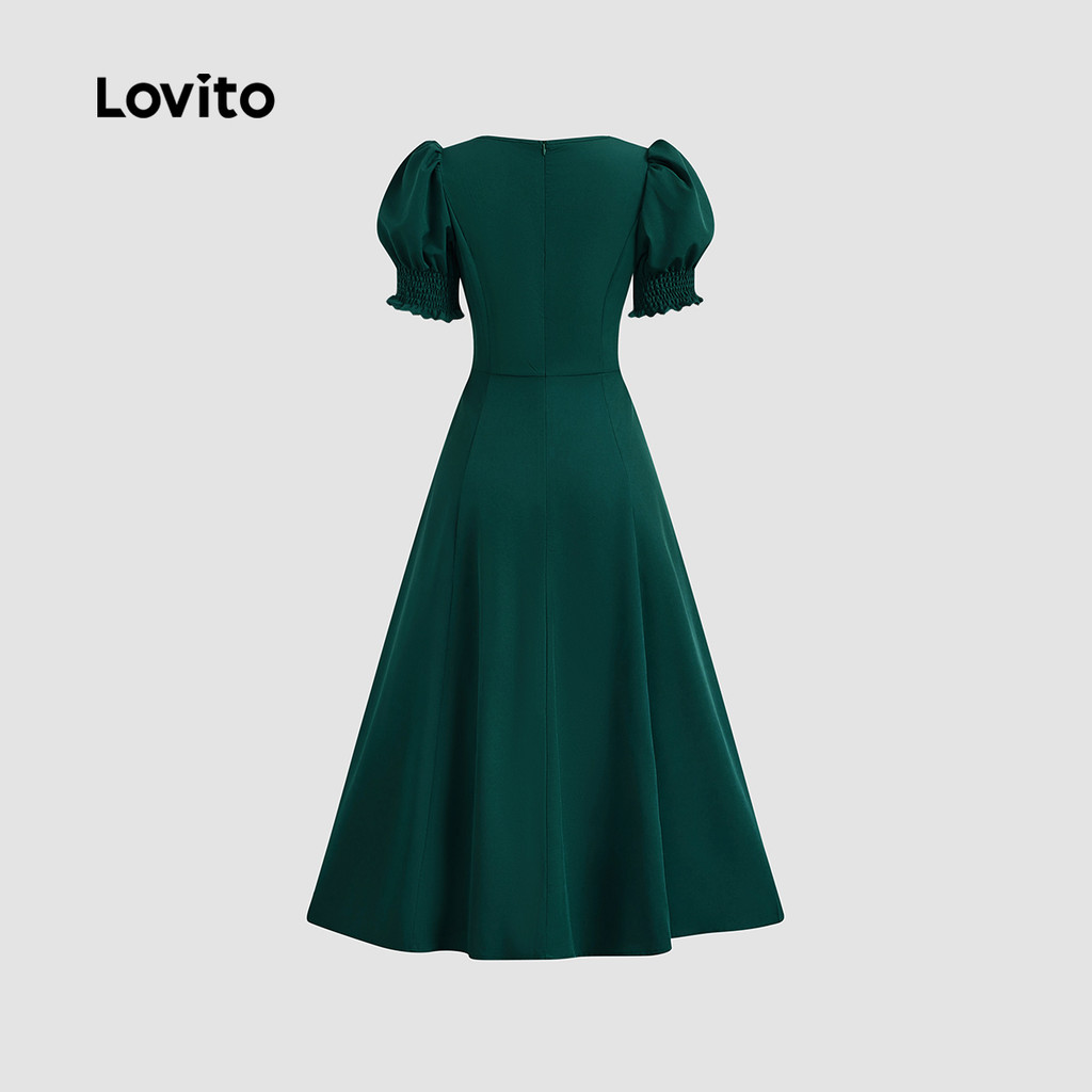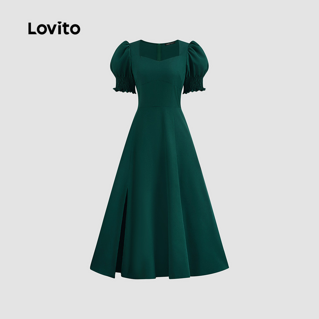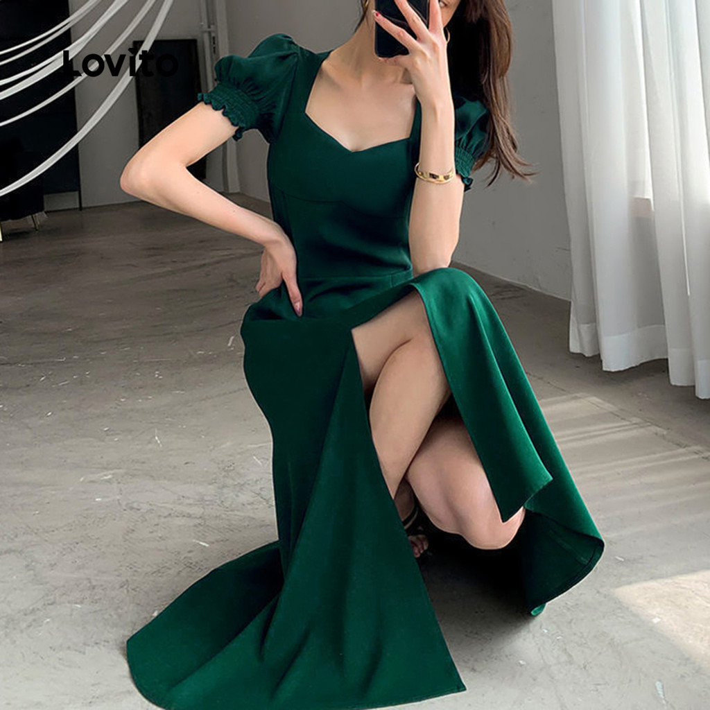 Lovito Vestido feminino elegante com corte reto e frente dividida L129ED267