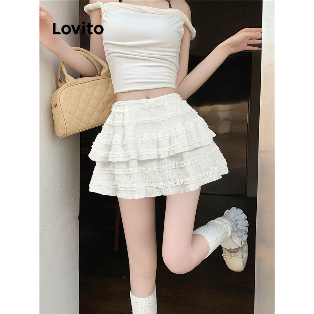Lovito Saias Casuais Com Babados Lisos Para Mulheres L88AD161