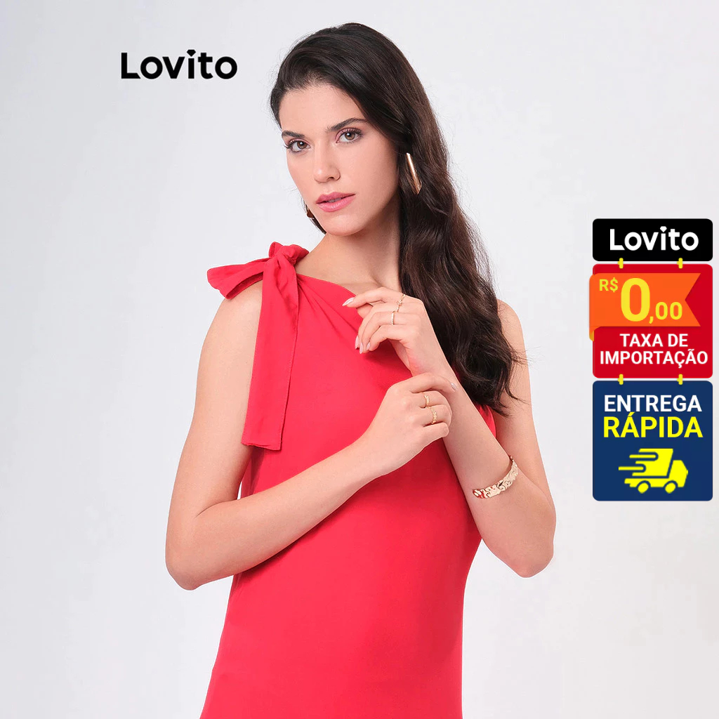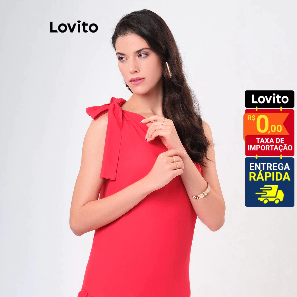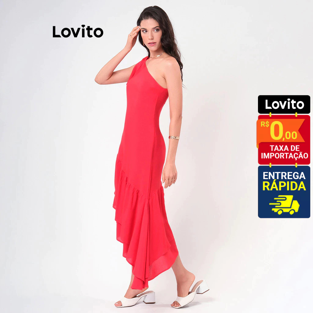 Lovito Vestido Natal Vermelho Um Ombro Só Assimetrico com Babado Midi Feminino LBRL042