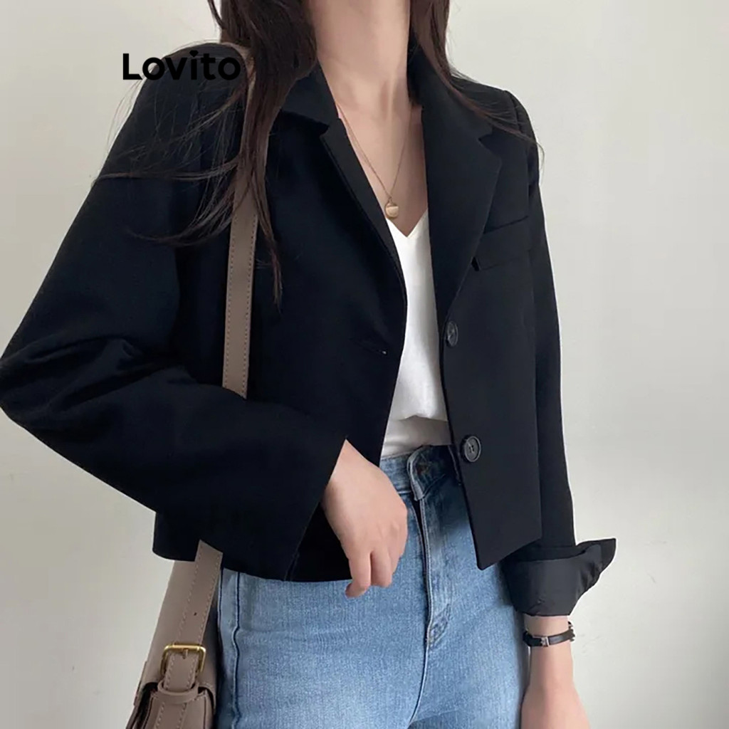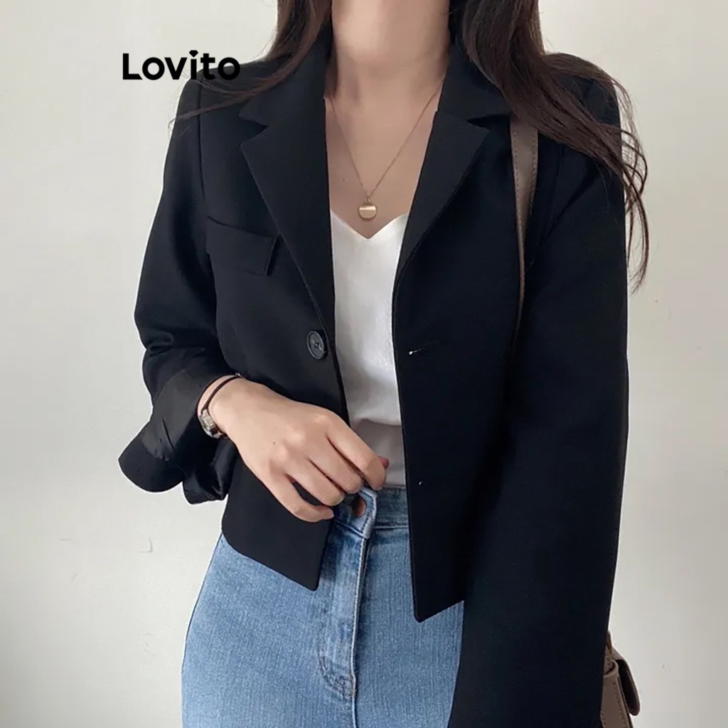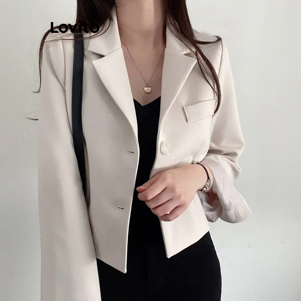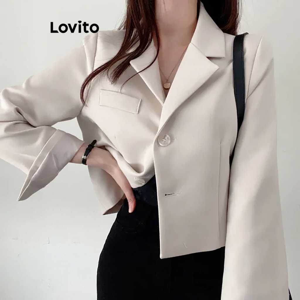 (Hot) Lovito Blazer Casual Com Botão Liso E Bolso Para Mulheres LNE36029 (Cáqui/Cinza/Branco Off/Preto)
