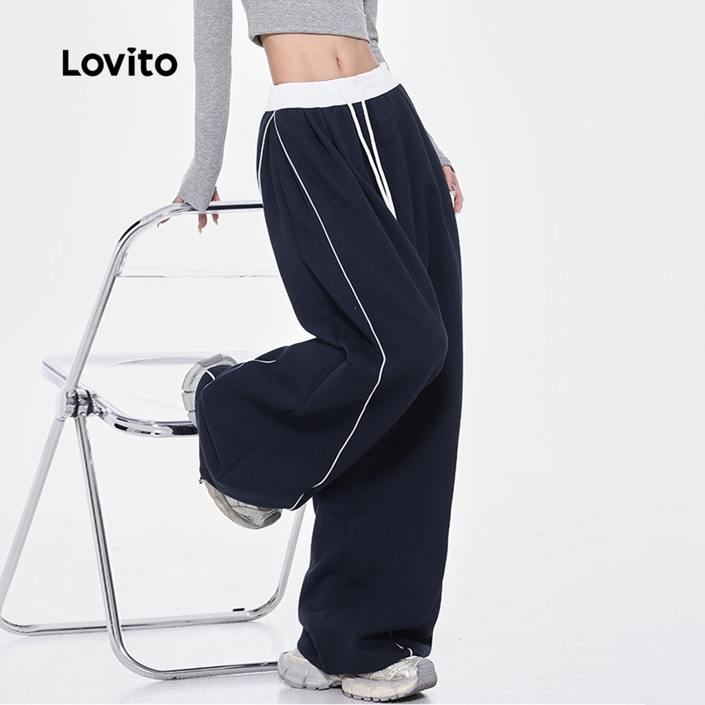 Lovito Calça Casual De Verão/Primavera Com Costura Em Tecido Liso E Cordão Para Mulheres L110AD1475