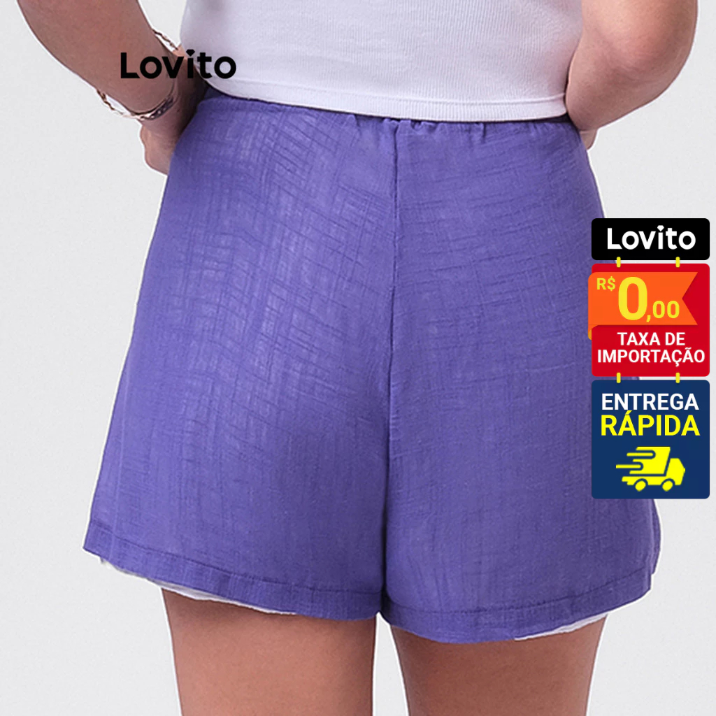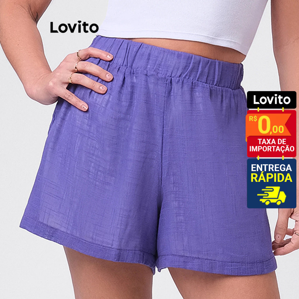 Lovito Shorts Feminino Curto Elástico Cintura LB279BRL308